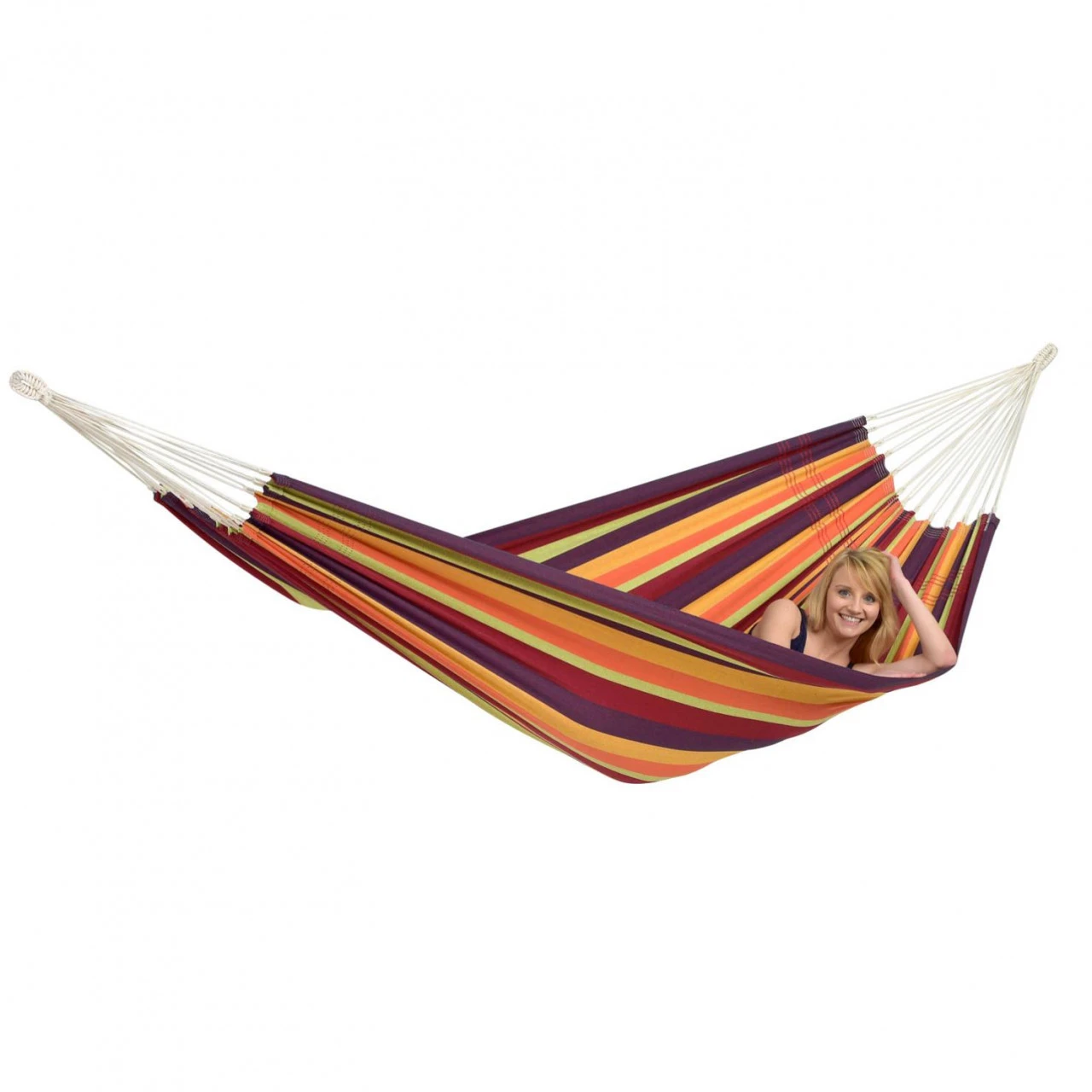 Die Amazonas Lambada Hängematte ist eine farbenfrohe brasilianische Hängematte in Größe L. Anders als bei anderen brasilianischen Hängematten: Der Stoff ist 20% dünner gewebt. Extra weicher, fest gewebter Hängemattenstoff sorgt für maximalen Liegekomfort. Zahlreiche Aufhängeschnüre sorgen für eine gleichmäßige Gewichtsverteilung in der Hängematte, die Hängematte wird perfekt aufgefächert und gibt ein Gefühl von Schwerelosigkeit. Per Hand eingewebte und doppelt 5-fach vernähte Ösen als stabile Basis für die zahlreichen Aufhängeschnüre. Im farblich abgestimmten Stoffbeutel kann die Amazonas Lambada Hängematte aufbewahrt und transportiert werden.