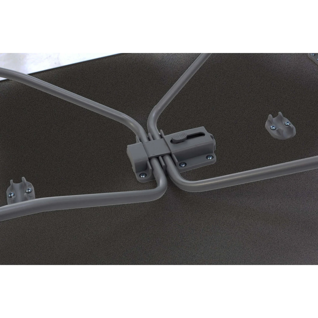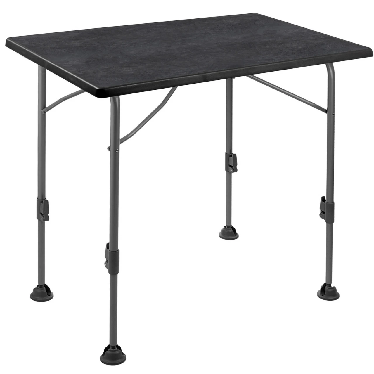 Der Brunner Linear Black 100 ist ein Campingtisch, der es in sich hat. Die „Sevelit“-Tischplatte ist „Made in Germany“ und absolut wetterfest und hitzebeständig. Dadurch wird die Lebensdauer deines Tisches um mehrere Jahre erhöht. Das stabiles Stahlgestell orientiert sich an den herkömmlichen Esstischen und hat vier senkrechte Tischbeine, ohne Querstangen. Dadurch entstehen an den beiden Stirnseiten 2 zusätzliche Sitzplätze. Um Bodenschrägen oder größere Unebenheiten auszugleichen, sind die Tischbeine stufenlos in der Höhe verstellbar. Die großen Tellerfüße mit Kugelgelenk gleichen kleinere Unebenheiten im Boden aus. Mit dem „Mountless Folding System“ klappst du deinen Brunner Linear Black 100 Campingtisch platzsparend zusammen.