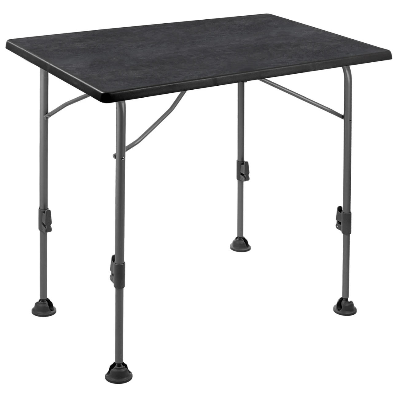 Der Brunner Linear Black 80 ist ein Campingtisch, der es in sich hat. Die „Sevelit“-Tischplatte ist „Made in Germany“ und absolut wetterfest und hitzebeständig. Dadurch wird die Lebensdauer deines Tisches um mehrere Jahre erhöht. Das stabiles Stahlgestell orientiert sich an den herkömmlichen Esstischen und hat vier senkrechte Tischbeine, ohne Querstangen. Dadurch entstehen an den beiden Stirnseiten 2 zusätzliche Sitzplätze. Um Bodenschrägen oder größere Unebenheiten auszugleichen, sind die Tischbeine stufenlos in der Höhe verstellbar. Die großen Tellerfüße mit Kugelgelenk gleichen kleinere Unebenheiten im Boden aus. Mit dem „Mountless Folding System“ klappst du deinen Linear Black 80 Campingtisch platzsparend zusammen.