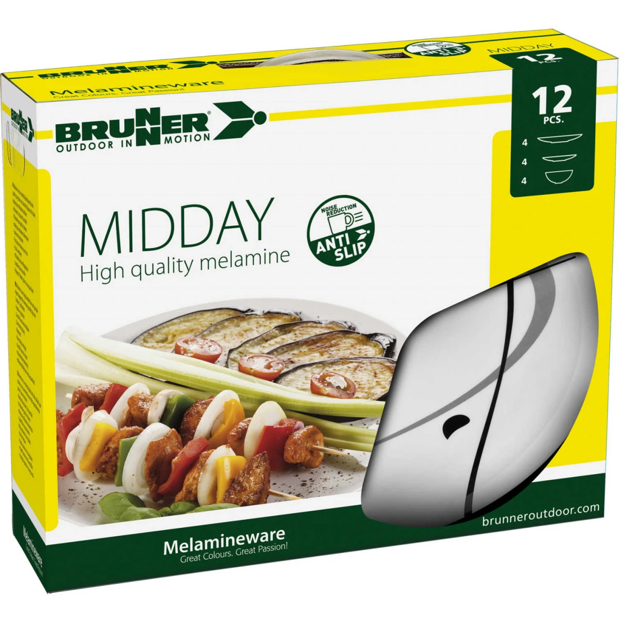 Das Brunner Midday Serenade ist ein 12-teiliges Geschirr-Set aus Melamin. Es ist selbstverständlich lebensmittelecht und BPA-frei. Die Geschirrteile können in der Spülmaschine gereinigt werden und sind tiefkühlgeeignet.