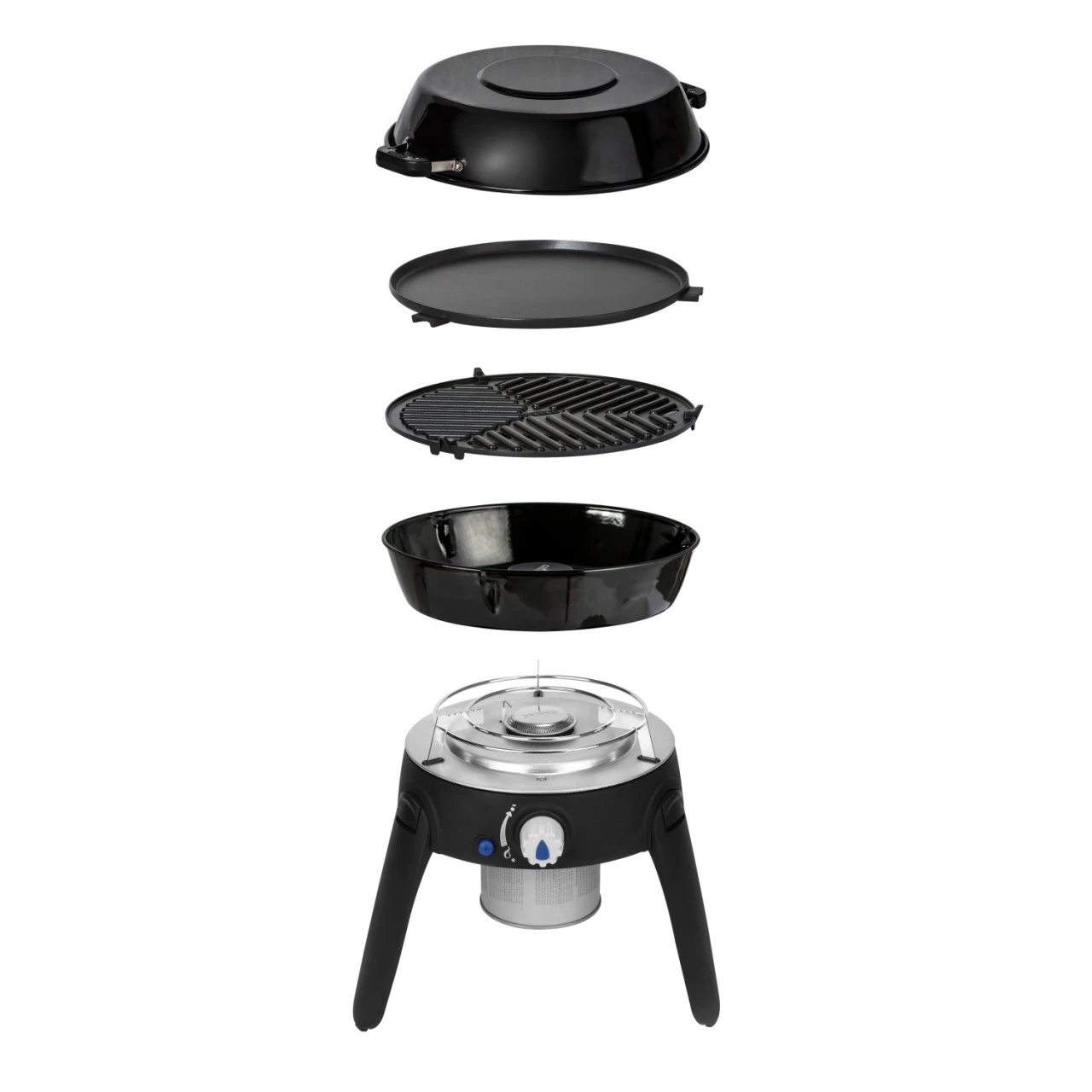 Der Cadac Safari Chef 30 HP Gasgrill ist ein leichtgewichtiger, kompakter Gasgrill und mit vier verschiedenen Grilloberflächen geliefert: ein Brenner mit Topfständer, ein Grillrost, eine Grillplatte und einen Topf, der auch als Deckel genutzt werden kann. Der Grillrost und die Grillplatte sind mit CADAC GreenGrill-Beschichtung versehen; eine Keramikbeschichtung für gesünderes Kochen. Dank des integrierten Wärmedeflektors unter dem Grillrost und der Grillplatte wird die Hitze gleichmäßig über die Kochfläche verteilt. Die abnehmbare Fettpfanne des Safari Chef 30 HP Gasgrill fängt abtropfendes Fett auf, schützt aber auch den Brenner des Safari Chef vor Wind und sorgt dafür, dass der Brenner nicht ausbläst. Die Fettpfanne kann mit Seifenwasser gereinigt werden.