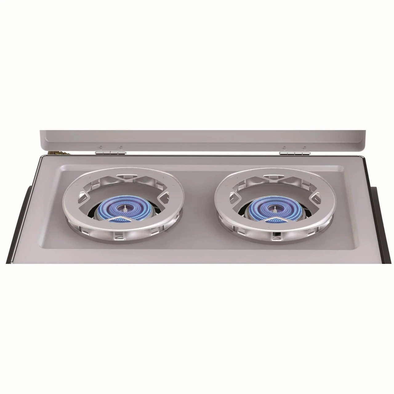 Der 400 SG Kocher mit Xcelerate Brenner ist ein ist ein Tischgaskocher von Campingaz.Der robuste Deckel aus lackiertem Stahl mit Kunststoffgriff erlaubt ein einfaches transportieren. Dank der zwei abnehmbaren Grillroste, mit Wasserschalen ist ein gleichzeitiges Kochen und Grillen möglich. Durch seine Xcelerate Brennerhalbiert sich die Kochzeit des 400 SG im Gegensatz zu herkömmlichen Brennern sogar bei Wind. Die breiten Standfüße sorgen für eine sehr gute Stabilität. Eine sehr feine Anpassung der Gaszufuhr ist durch die ergonomisch geformten Regelknöpfe jederzeit gewährleistet. Der 400 SGist nicht für den Einsatz in geschlossenen Räumen geeignet.