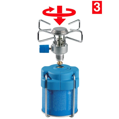 Mit einer Kartusche C 206 erreicht der Kocher eine Brenndauer von ca. 2 Stunden. Auf vier fixierten Topfträgern stehen auch grosse Töpfe sicher und stabil. Ohne Windschutz sind unterschiedliche Topfträgerpositionen für grosse und kleine Kochtöpfe möglich.
