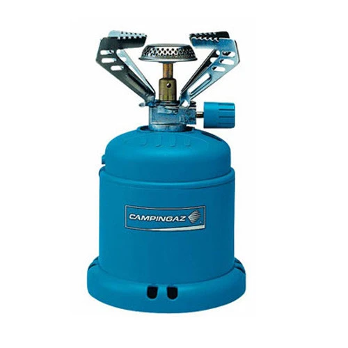 Der Campingaz Camping 206 S Kocher ist ein robuster Campingkocher mit stabiler Gehäuseglocke als Standbein. Die Gaskartusche wird in die Gehäuseglocke aus Kunststoff eingesetzt und dort mit Hilfe des Verdrehschutzes fixiert. Bei der Abnahme vom Gerät muss die Kartusche vollständig entleert sein.