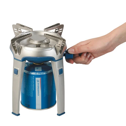 Der robuste Campingaz Bivouac Gaskocher hat ein futuristisches Design und weist ein hohes Maß an Stabilität auf. Er eignet aufgrund des hohen Bedienungskomforts auch besonders gut für Einsteiger, die noch nicht den Umgang mit Gaskochern gewohnt sind. Der Kocher ist groß genug, um auch größeren Pfannen und Töpfen sicheren, stabilen Halt zu geben. Trotzdem hat er ein kompaktes Maß, da die Beine für den Transport einfach abgenommen werden können.