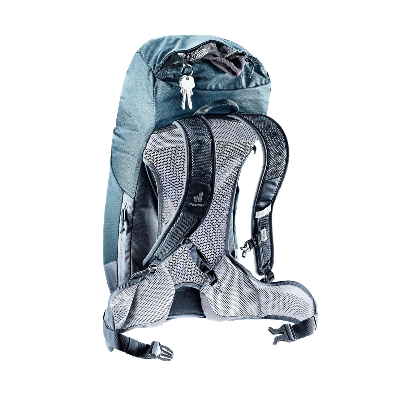 Der sportliche Deuter AC Lite 24 Wanderrucksack spielt seine Stärken mit dem Aircomfort Netzrücken-System aus, das so gut belüftet, dass der Flüssigkeitsverlust um bis zu einem Viertel reduziert wird. Die weichen, gepolsterten Schultergurte machen das Tragen an langen Tagestouren sehr angenehm. Der Rundprofilrahmen des AC Lite 24 Wanderrucksacks überträgt die Last auf den Hüftgurt. Zu den weiteren Ausstattungsmerkmalen des AC Lite 24 gehören unter anderem eine abnehmbare Regenhülle, 2 große Seitentaschen und eine Wanderstockhalterung. Außerdem ist der Rucksack mit einem 2 Liter Trinksystem kompatibel.