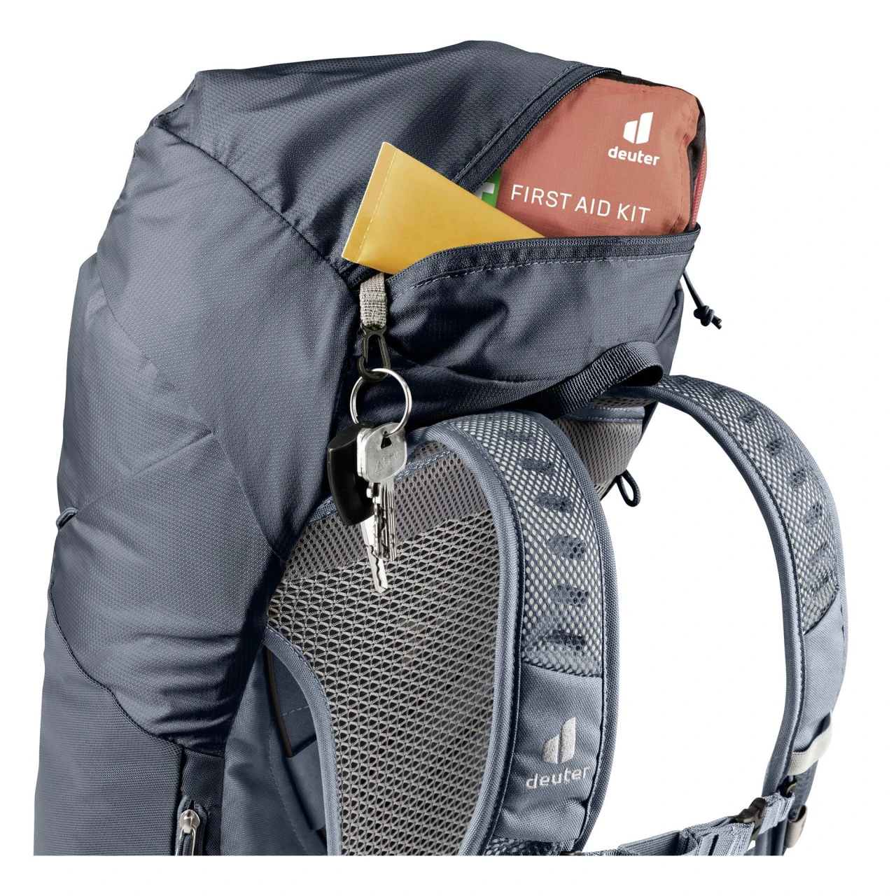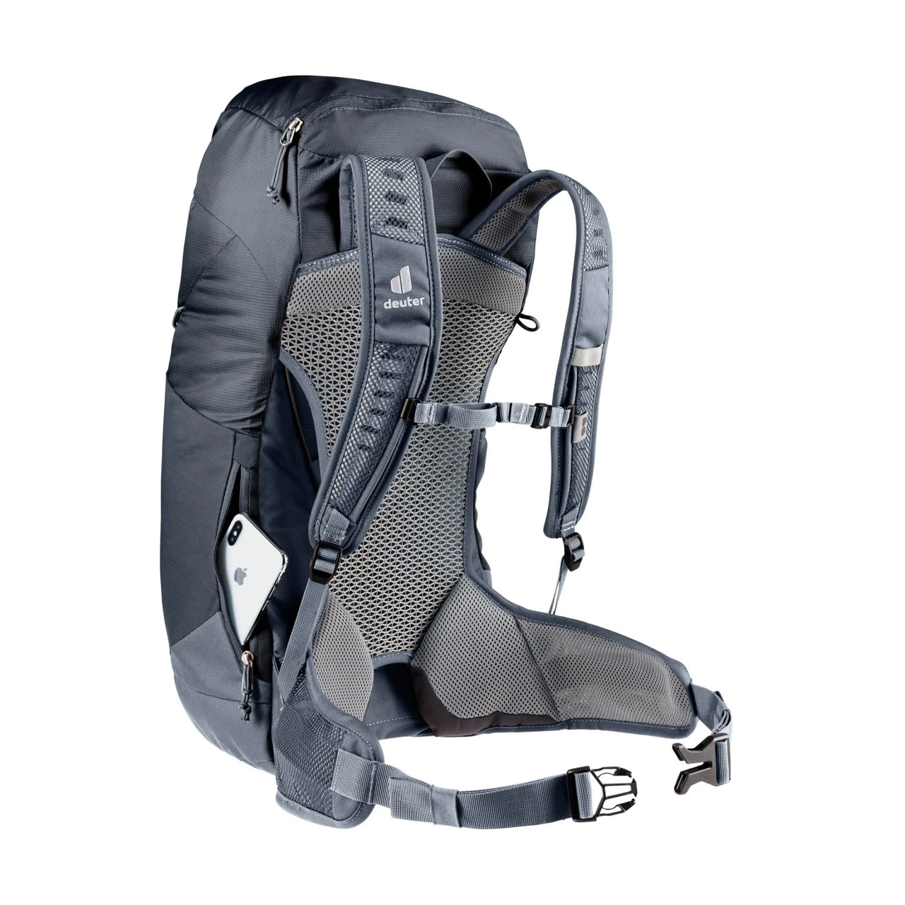 Der sportliche Deuter AC Lite 30 Wanderrucksack spielt seine Stärken mit dem Aircomfort Netzrücken-System aus, das so gut belüftet, dass der Flüssigkeitsverlust um bis zu einem Viertel reduziert wird. Die weichen, gepolsterten Schultergurte machen das Tragen an langen Tagestouren sehr angenehm. Der Rundprofilrahmen des AC Lite 30 Wanderrucksacks überträgt die Last auf den Hüftgurt. Zu den weiteren Ausstattungsmerkmalen des AC Lite 30 gehören unter anderem eine abnehmbare Regenhülle, 2 große Seitentaschen und eine Wanderstockhalterung. Außerdem ist der Rucksack mit einem 2 Liter Trinksystem kompatibel.