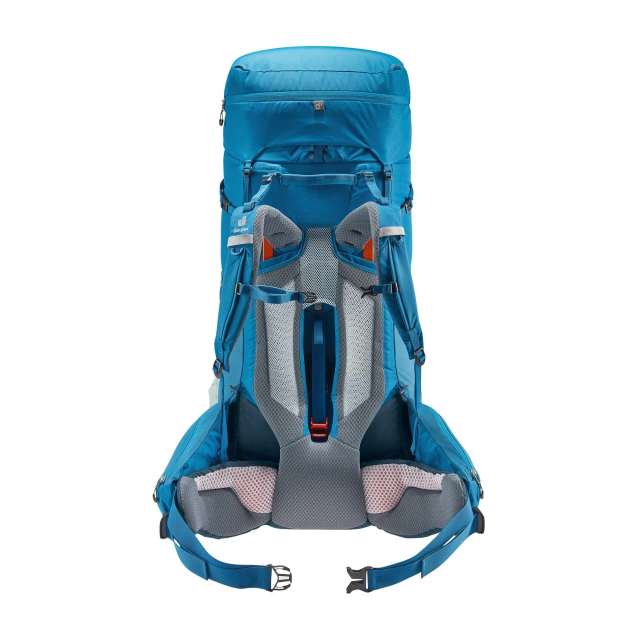 Der Deuter Aircontact Core 70+10 Trekkingrucksack ist ein multifunktionaler und komfortabler für lange Trekkingtouren oder für Reisen um die Welt. Um den Rücken noch besser zu belüften, hat das Aircontact Rückensystem neben dem großen Belüftungskanal das neue Air Spacer Mesh bekommen. Damit der Aircontact Core 70+10 Trekkingrucksack ideal sitzt, lässt sich die Rückenlänge durch das VariSlide System perfekt anpassen. Der Y-Rahmen sowie das ergonomische, trapezförmige Lumbalpad sorgen für eine optimale Lastenübertragung auf das Becken, so dass der Rücken entlastet wird. Um die Gewichtsverteilung beim Laufen anzupassen, lässt sich der Hüftgurt bequem über die Pull-Forward Verstellung festziehen oder lösen. Die beweglichen Hüftflossen machen das Tragen des Rucksacks zusätzlich noch kraftsparender. Auf den Hüftflossen sind 2 abnehmbare Reißverschlusstaschen mit 3 L Volumen aufgesetzt. Eine der beiden Taschen lässt sich so erweitern, dass sogar eine 1,5 L Flasche hineinpasst.