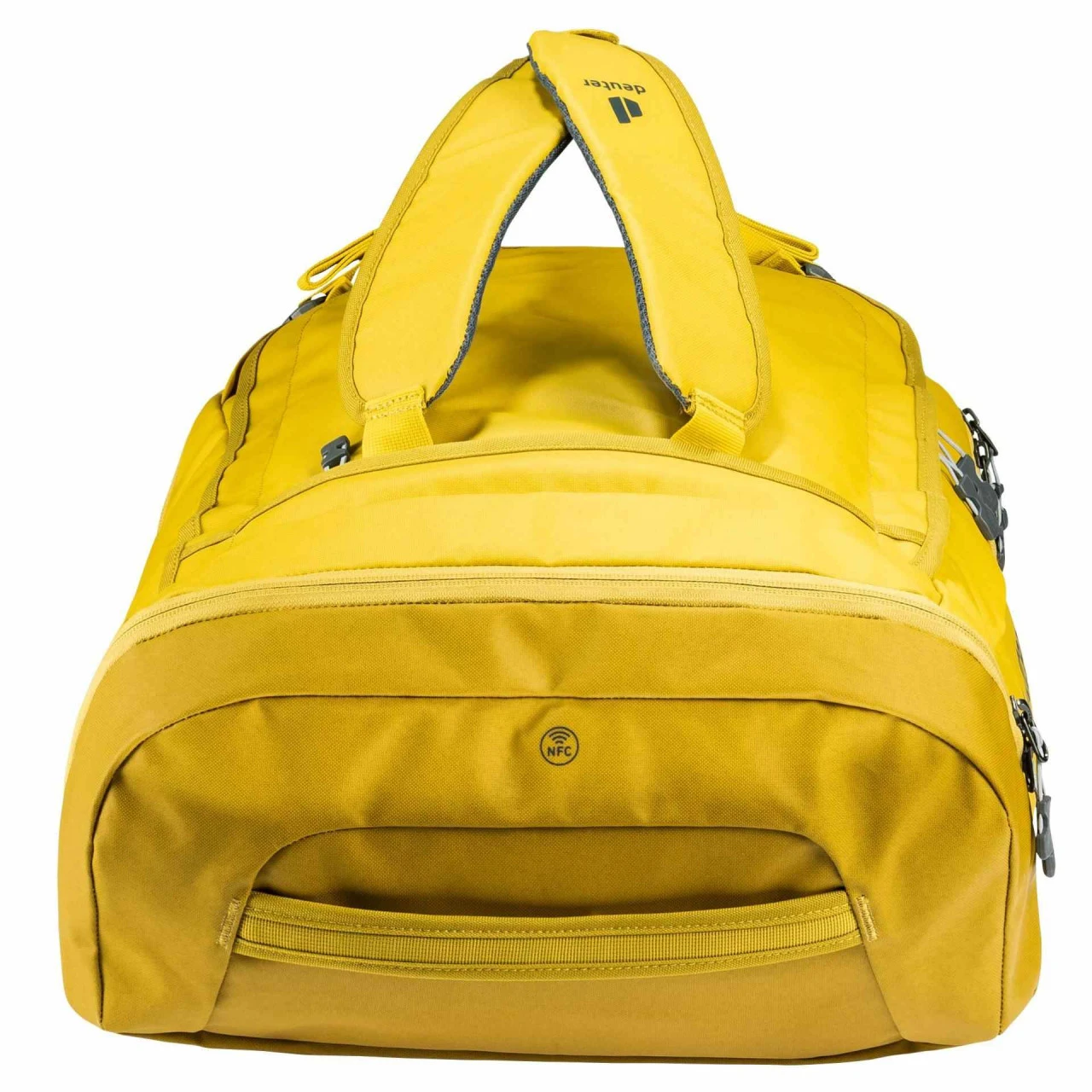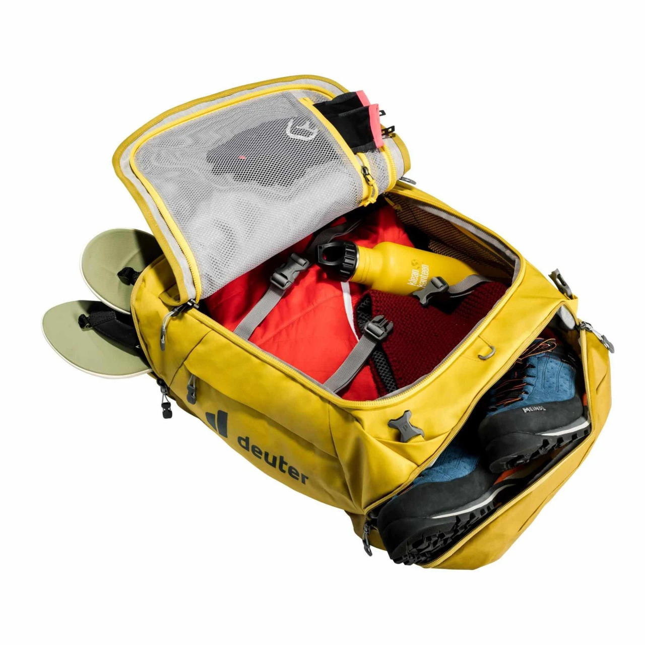 Die robuste Deuter Aviant Duffel Pro 40 Reisetasche ist die ideale Tasche für Deine Reise, da sie viel Platz für Deine Ausrüstung bereitstellt, wasserabweisend ist und nachhaltig produziert wurde. Sie ist ein bluesign® Produkt und wurde aus 17 =0,5 Liter PET Flaschen hergestellt. Außerdem ist die Verpackung der Duffel 40 Pro noch nachhaltiger als vorher. Sie lässt sich einfach zusammenfalten und in ihrer Außentasche verstauen. Zu den weiteren Ausstattungsmerkmalen der Aviant Duffel Pro 40 gehören unter anderem verstaubare Schulterträger, zwei große Seitentaschen, Reißverschluss-Netzinnentaschen, ein Reißverschluss-Wertsachentasche außen und zwei Tragegriffe. Zusätzlich besitzt die Tasche noch einen Fixpunkt am Hauptfach, sodass Du dort ein Reißverschluss-Schloss anbringen kannst. Die Tasche hat Handgepäck-Maße, allerdings solltest Du diese vorher mit den Handgepäck-Bestimmungen Deiner Airline abklären.