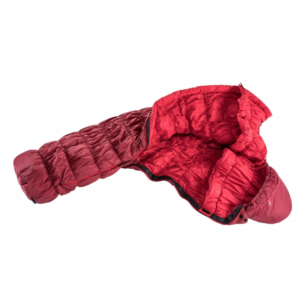 Der Deuter Exosphere -6° REG Kunstfaserschlafsack eignet sich für Trekker und Radfahrer, die einen dehnbaren Schlafsack mit einem optimalen Wärmeverhältnis benötigen. Er sorgt durch die elastische Thermo Stretch Komfort Konstruktion für mehr Bewegungsfreiheit und hohen Schlafkomfort. Zu den Ausstattungsmerkmalen des Exosphere -6° REG gehören eine Innentasche, Footwarmer, einen Wärmekragen, eine ergonomisch geformte Kontourenkapuze mit Schnürzug, ein komprimierbarer Packsack, ein extra Aufbewahrungssack und eine Klemmschutzleiste. Das ErgoFoot System sorgt für die perfekte Isolation. Die Füllung wird durch den bequemen Schnitt nicht zusammengedrückt. Der Exosphere -6° REG Schlafsack ist koppelbar und kann somit zwei Exosphere -6° Schlafsäcke verbinden.