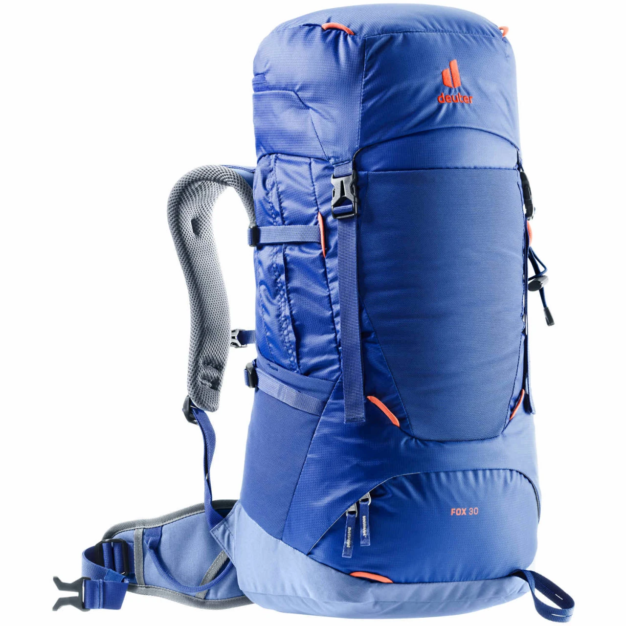Der Deuter Fox 30 Kinder Trekkingrucksack ist speziell auf die Benutzung von Kindern und Jugendlichen ab 8 Jahren angepasst. Seine Eigenschaften wurden von Trekkingrucksäcken in Erwachsenengröße adaptiert und mit einer passenden Rückenlänge für Kinder kombiniert. Der Rucksack verfügt über angenehme Hüftflossen, vorgeformte Schulterträger und einen stufenlos verstellbaren Brustgurt mit Signalpfeife, wodurch gewährleistet wird, dass der Rucksack schön fest sitzt und der Rücken entlastet wird. Zu den weiteren Ausstattungsmerkmalen des Fox 30 gehören unter anderem elastische Seitentaschen in denen du Flaschen oder Ähnliches verstauen kannst, ein geräumiges Deckelfach und ein separates Bodenfach. Außerdem ist der Rucksack mit einem Trinksystem bis zu 3 Liter kompatibel.