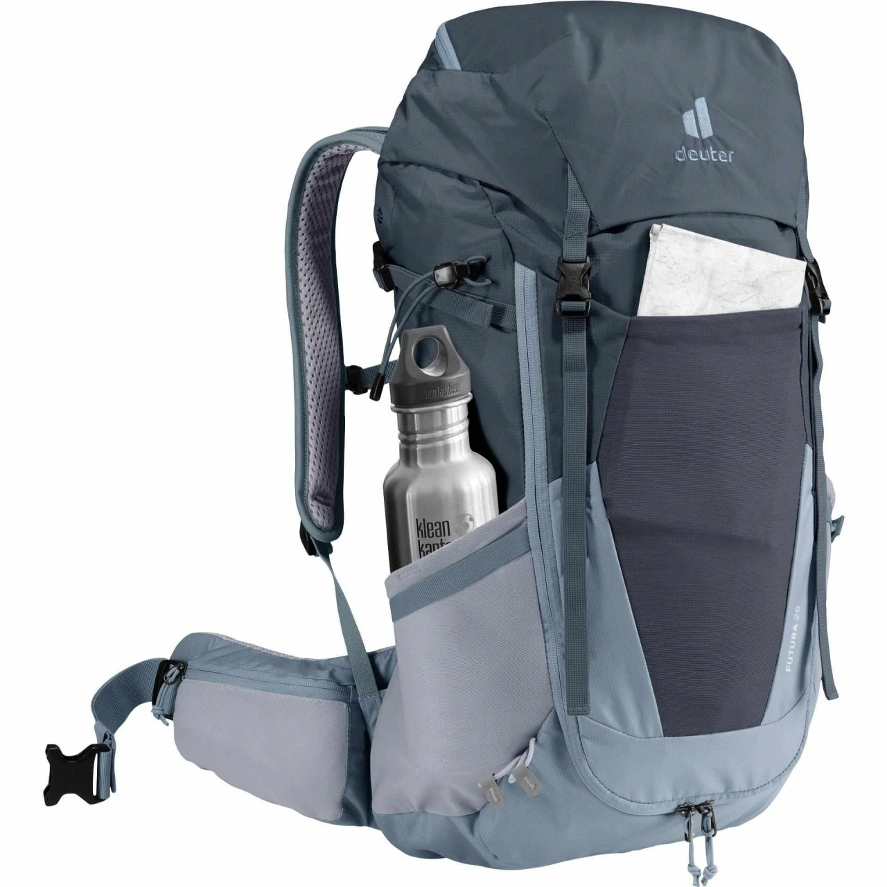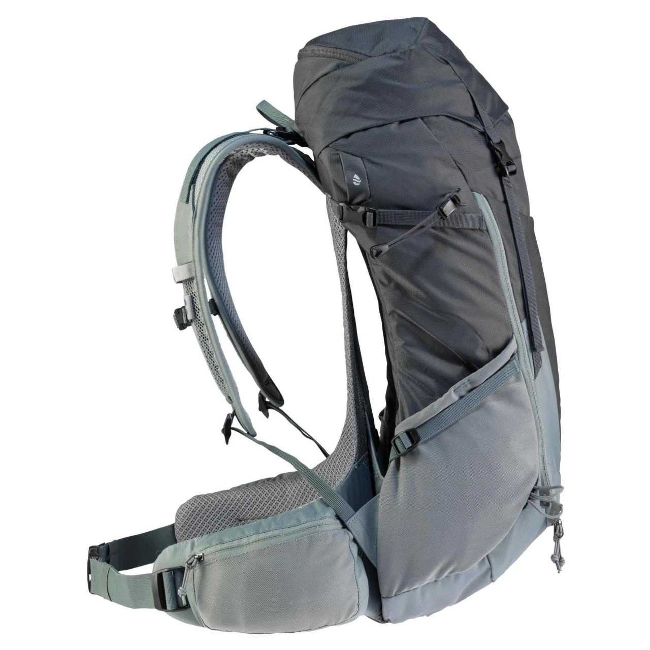 Der Deuter Futura 26 Wanderrucksack eignet sich ideal für Tages- und Mehrtagestouren. Der Rucksack wurde besonders nachhaltig produziert und 50% seines Garns besteht aus recyceltem Rohstoff. In der Futura-Serie besteht das Hauptmaterial aus zertifiziertem Bluesign©. Der Rucksack lässt sich besonders bequem durch seine beweglichen ActiveFit Schulterträger tragen. Durch das gut belüftete Aircomfort-Rückensystem mit luftdurchlässigem Mesh schwitzt Du bei Deinen Touren deutlich weniger. Zu den weiteren Ausstattungsmerkmalen des Futura 26 gehören unter anderem eine Helmhalterung mit der du Deinen Helm am Rucksack befestigen kannst, eine geräumige Deckeltasche für Kleinteile und eine luftige Frontstecktasche, in der Deine nassen Anziehsachen schnell trocknen können. Des Weiteren ist Dir ein schneller und leichter Zugriff auf den Inhalt Deines Rucksacks mittels der Reißverschluss-Frontöffnung möglich. Die gepolsterten Hüftflossen mit zwei Reißverschluss-Taschen und die Pull-Forward-Verstellung am Hüftgurt bieten Dir zusätzlichen Komfort. Außerdem ist der Futura 26 mit einem Trinksystem kompatibel und besitzt eine abnehmbare Regenhülle.