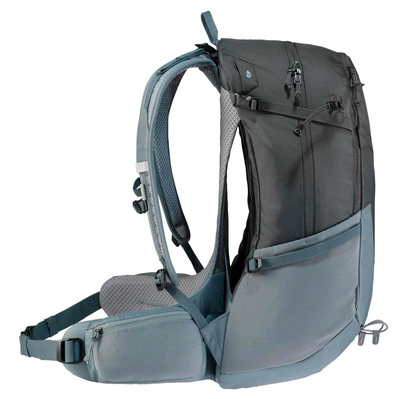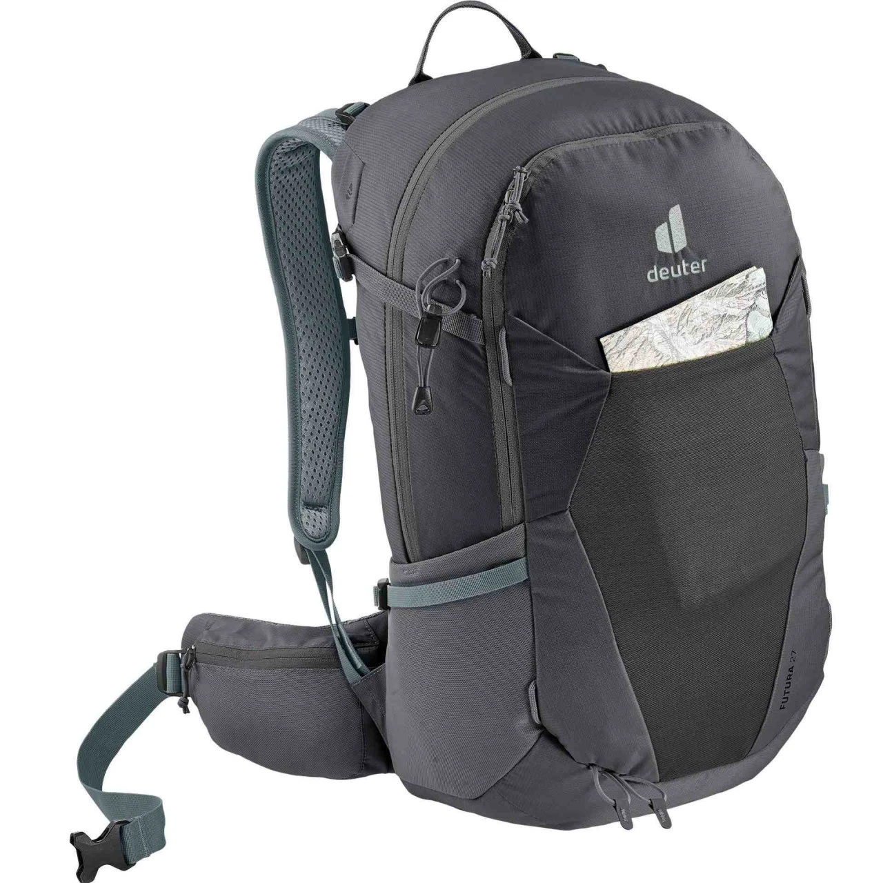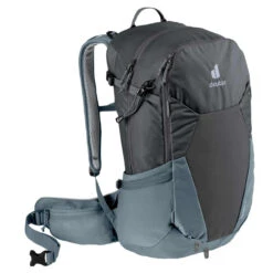 Der Deuter Futura 27 Wanderrucksack eignet sich ideal für Deine Tagestouren. Der Rucksack wurde besonders nachhaltig produziert und 50% seines Garns besteht aus recyceltem Rohstoff. In der Futura-Serie besteht das Hauptmaterial aus zertifiziertem Bluesign©. Der Rucksack lässt sich besonders bequem durch seine beweglichen ActiveFit Schulterträger tragen. Durch das gut belüftete Aircomfort-Rückensystem mit luftdurchlässigem Mesh schwitzt Du bei Deinen Touren deutlich weniger. Zu den weiteren Ausstattungsmerkmalen des Futura 27 gehören unter anderem eine Helmhalterung mit der du Deinen Helm am Rucksack befestigen kannst, eine luftige Frontstecktasche, in der Deine nassen Anziehsachen schnell trocknen können und ergonomische Hüftflossen, die Du mittels der Pull-Forward-Verstellung nach Deinen Bedürfnissen anpassen kannst. Eine Vortasche mit großem Organisationsteil und elastische Seitentaschen bieten Dir viel Stauraum für Deine persönlichen Gegenstände, die Du bei dir führen möchtest. Außerdem ist der Futura 27 mit einem Trinksystem kompatibel und besitzt eine abnehmbare Regenhülle.