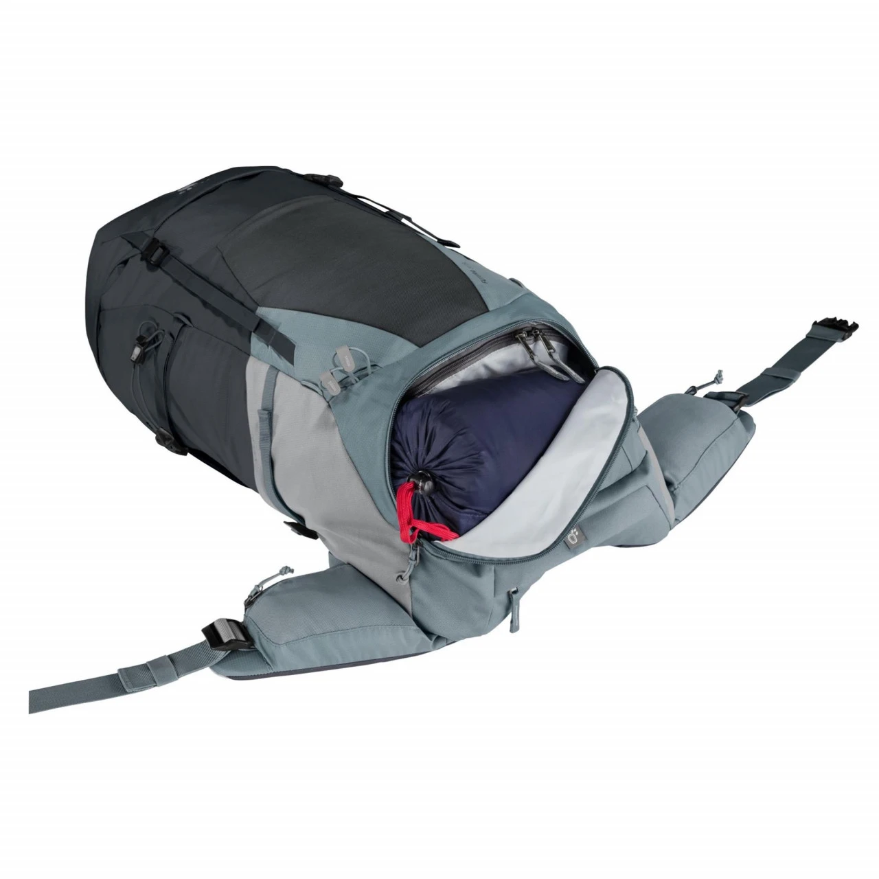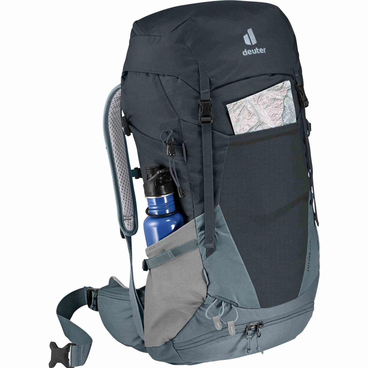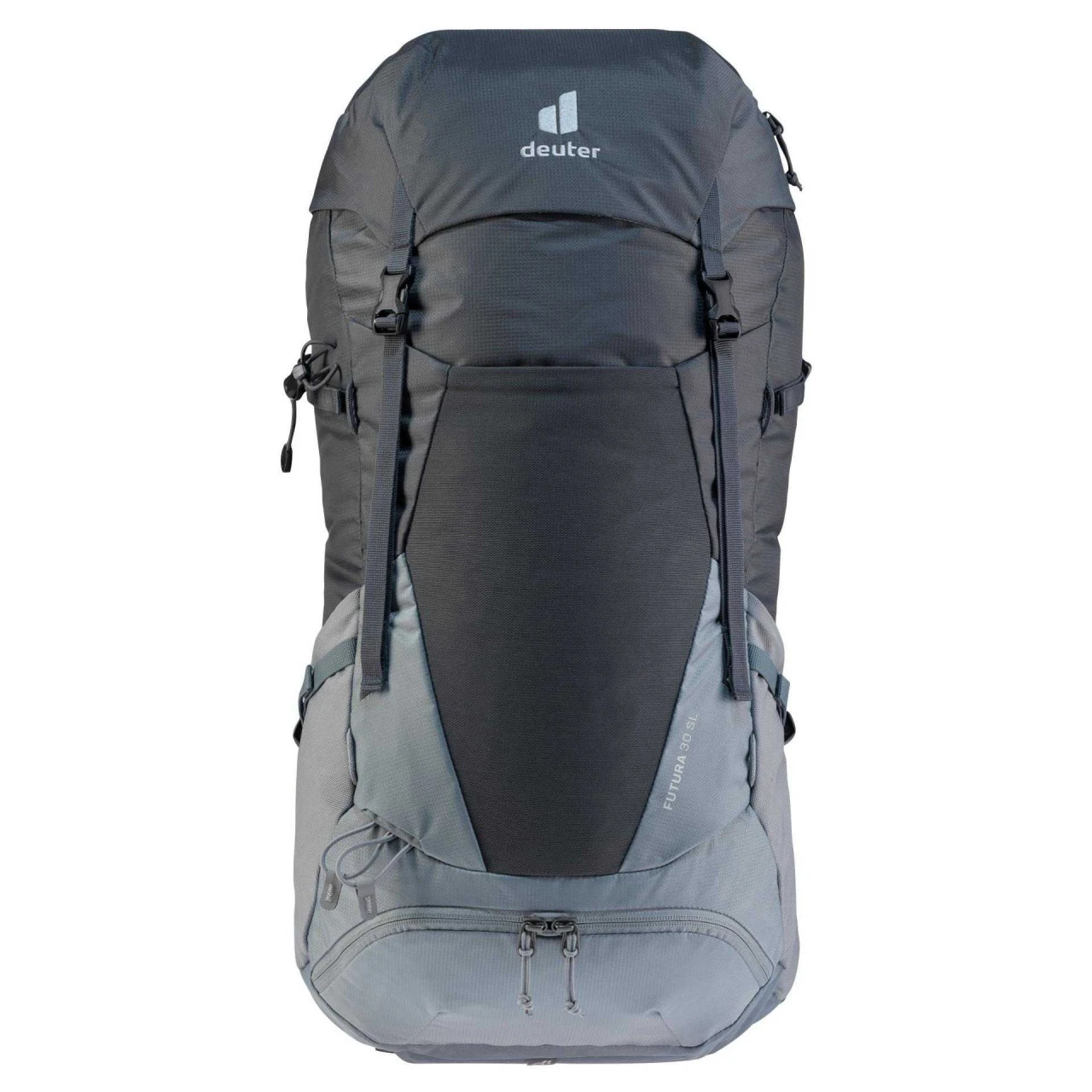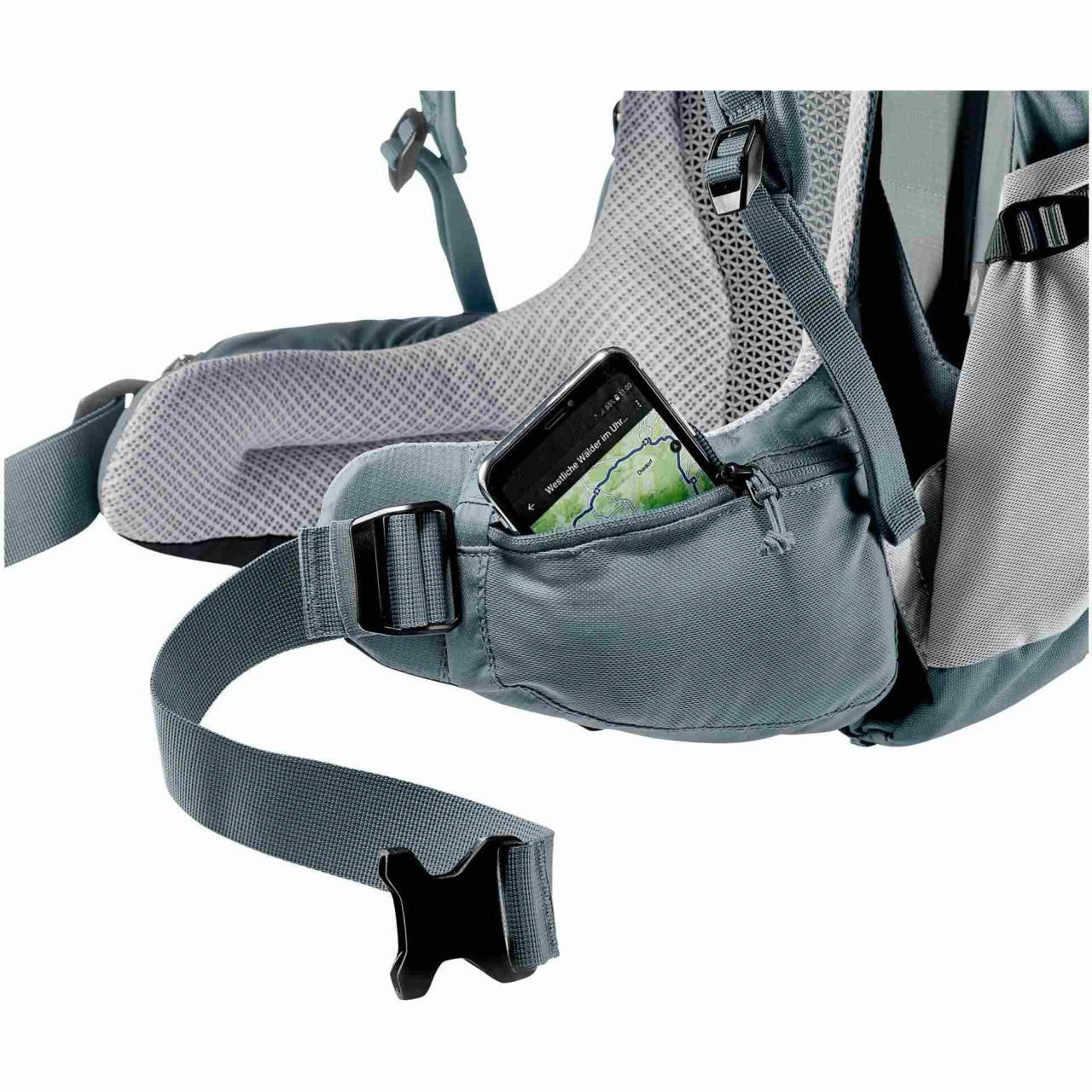 Der Deuter Futura 30 SL Damen Wanderrucksack eignet sich ideal für Tages- und Mehrtagestouren. Der Rucksack wurde besonders nachhaltig produziert und 50% seines Garns besteht aus recyceltem Rohstoff. In der Futura-Serie besteht das Hauptmaterial aus zertifiziertem Bluesign©. Der Rucksack lässt sich besonders bequem durch seine beweglichen ActiveFit Schulterträger tragen. Durch das gut belüftete Aircomfort-Rückensystem mit luftdurchlässigem Mesh schwitzt Du bei Deinen Touren deutlich weniger. Zu den weiteren Ausstattungsmerkmalen des Futura 30 SL gehören unter anderem eine Helmhalterung mit der du Deinen Helm am Rucksack befestigen kannst, eine geräumige Deckeltasche für Kleinteile, ein separates Bodenfach und eine luftige Frontstecktasche, in der Deine nassen Anziehsachen schnell trocknen können. Für weiteren Komfort sorgen die gepolsterten Hüftflossen mit einer Reißverschlusstasche und die Pull-Forward-Verstellung am Hüftgurt. Die elastischen Seitentaschen bieten Dir viel Stauraum für Deine persönlichen Gegenstände, die Du bei dir führen möchtest. Außerdem ist der Futura 30 SL mit einem Trinksystem kompatibel und besitzt eine abnehmbare Regenhülle.