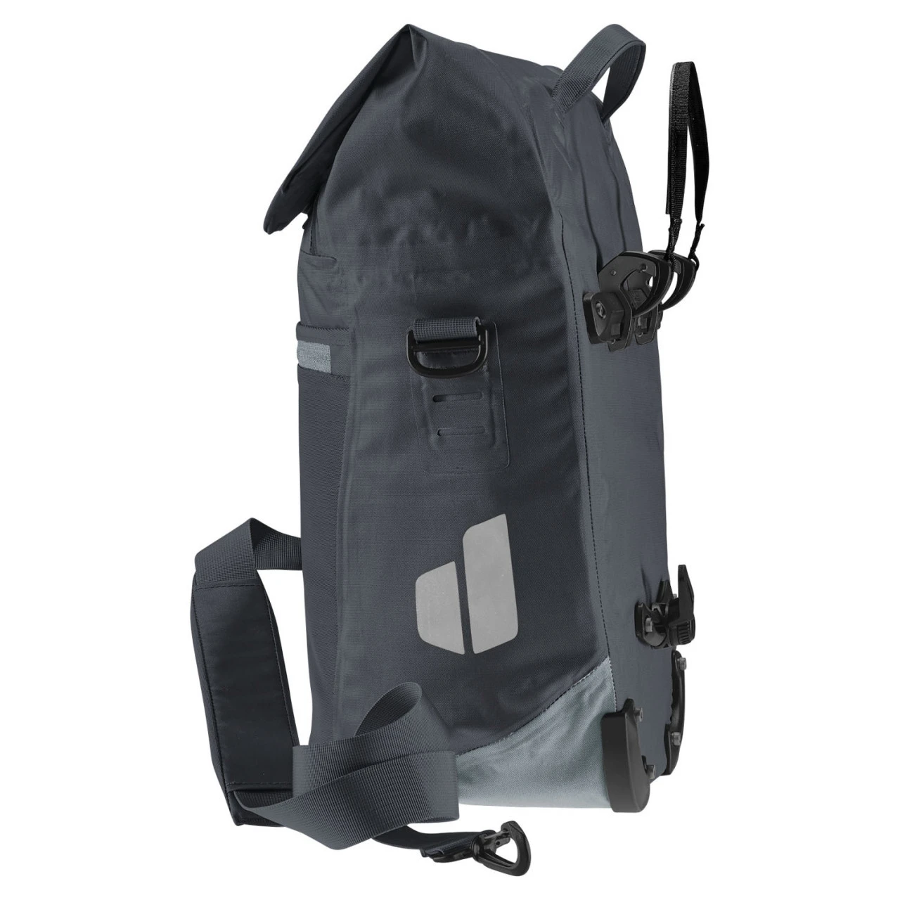 Maximale Bewegungsfreiheit bietet die neu entwickelte BagFix-Halterung. Zwei Führungsschienen und zwei Haken sorgen während der Fahrt für zuverlässigen Halt der Fahrradtasche. So liegt die Last zu 100% auf dem Hinterrad und nicht auf dem Rücken. Im Stand kann die Deuter Mainhattan 17+10 mit nur einem Handgriff vom Gepäckträger abgenommen und als Schultertasche verwendet werden.