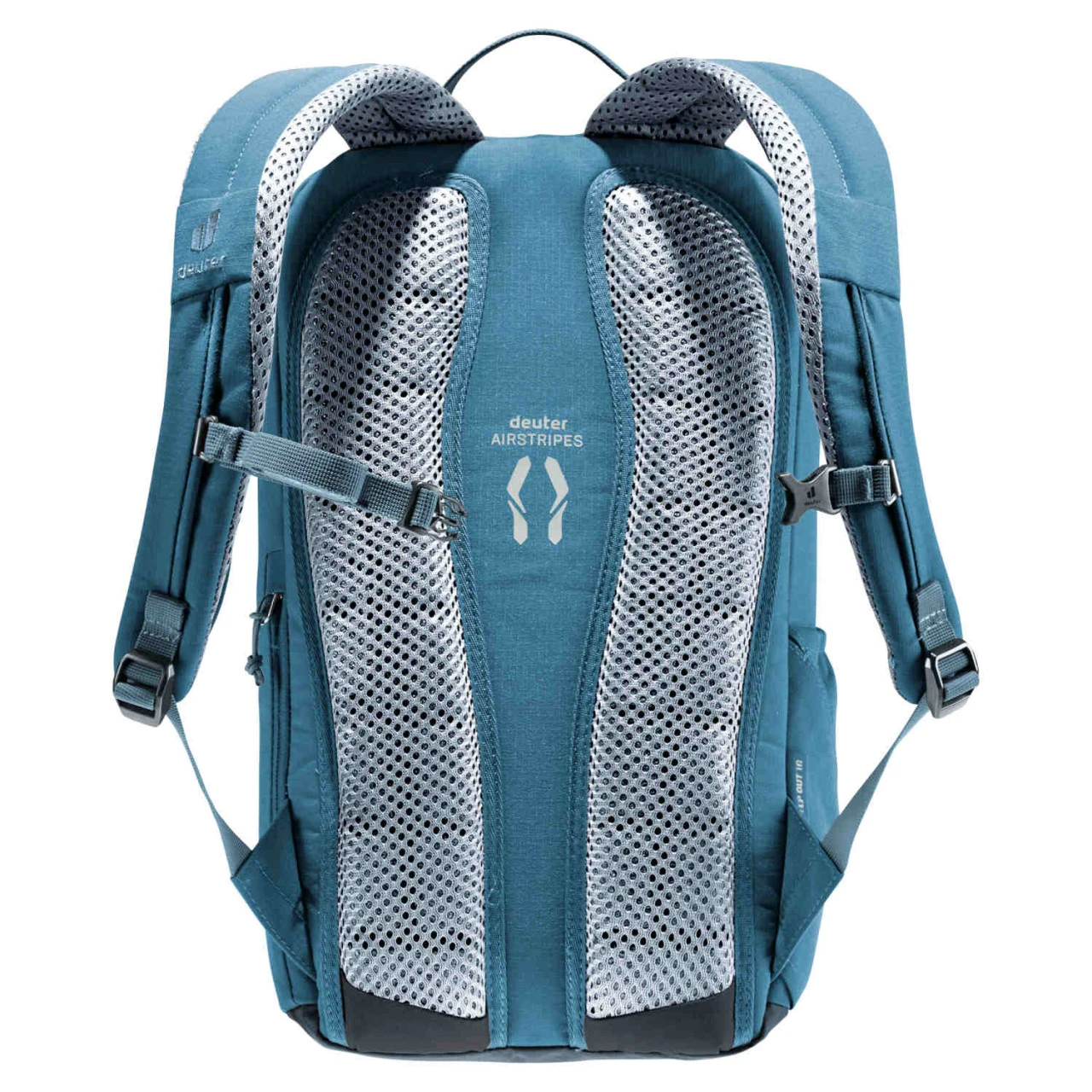 Der Step Out 16<7b> ist ein Rucksack von Deuter der mit einem urbanen Design ausgestattet ist, was ihn besonders alltagstauglich macht. Durch seine praktischen Eigenschaften eignet er sich perfekt für Schule, Büro und Sport. Zu seinen Features gehört sein geräumiges Hauptfach, welches mit einem Innenfach für Wertsachen, einem Dokumentenfach und einen Schlüsselhalter ausgestattet ist. Seine Vordertasche ermöglicht Ihnen einen besonders schnellen Zugriff und seine Außentaschen eignen sich optimal um Dort eine Flasche zu verstauen. Damit das Tragen des Step Out besonders komfortabel ist, sind seine Schultergurte und sein Rücken mit angenehm weichen Polsterungen ausgestattet. Zudem ist im Rückenbereich des Rucksacks ein Belüftungssystem vorhanden, wodurch Sie auch an heißen Tagen nicht ins Schwitzen kommen. An der Vorderseite des Rucksacks kann man eine Materialleiste finden, an der man weitere Ausrüstungsgegenstände befestigen kann und eine reflektierende Blinklichthalterung, die besonders praktisch ist, wenn man bei Dunkelheit mit dem Fahrrad oder zu Fuß unterwegs ist.
