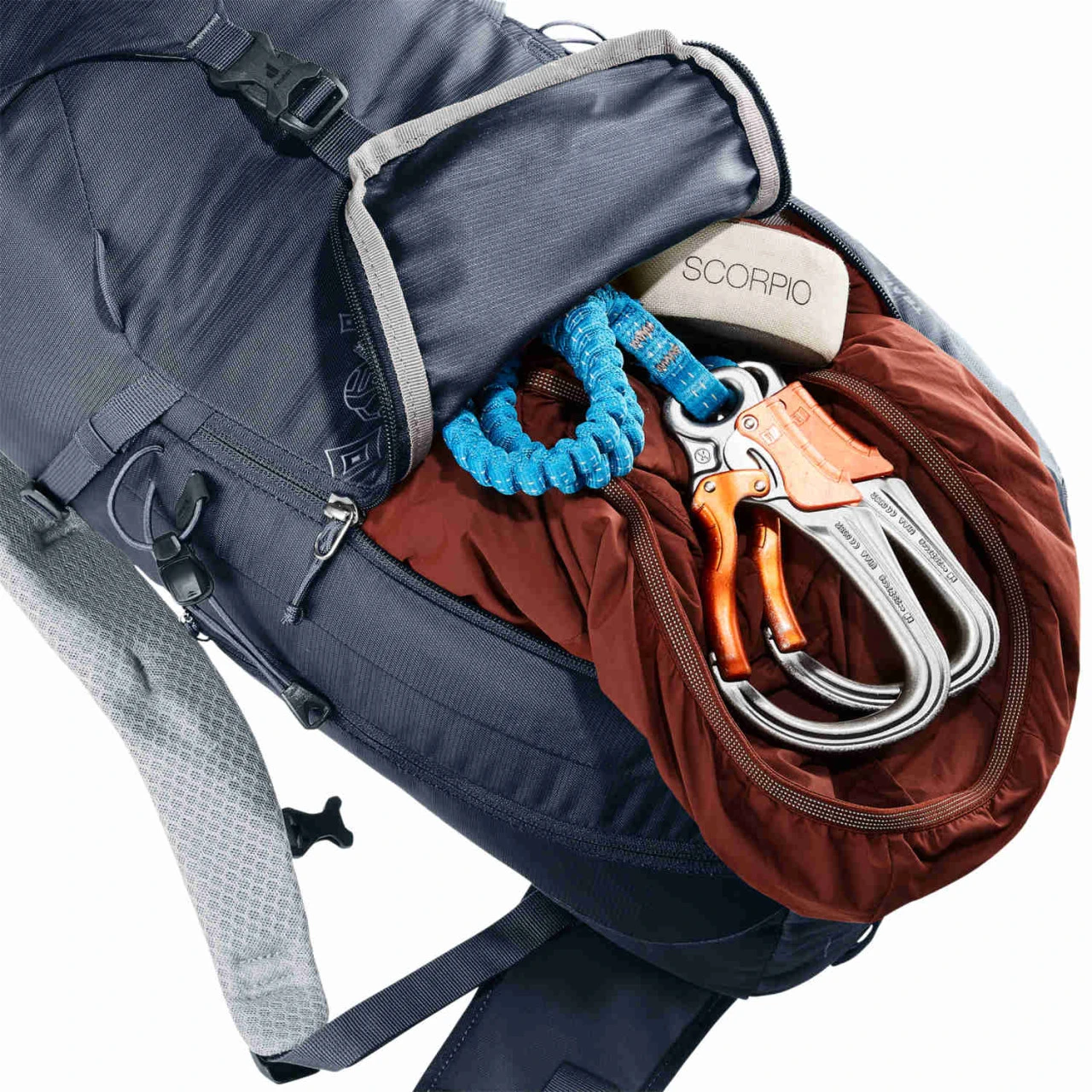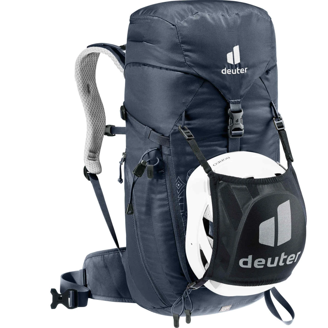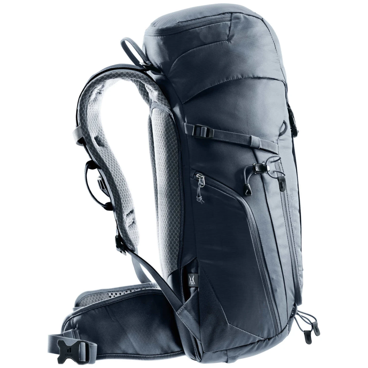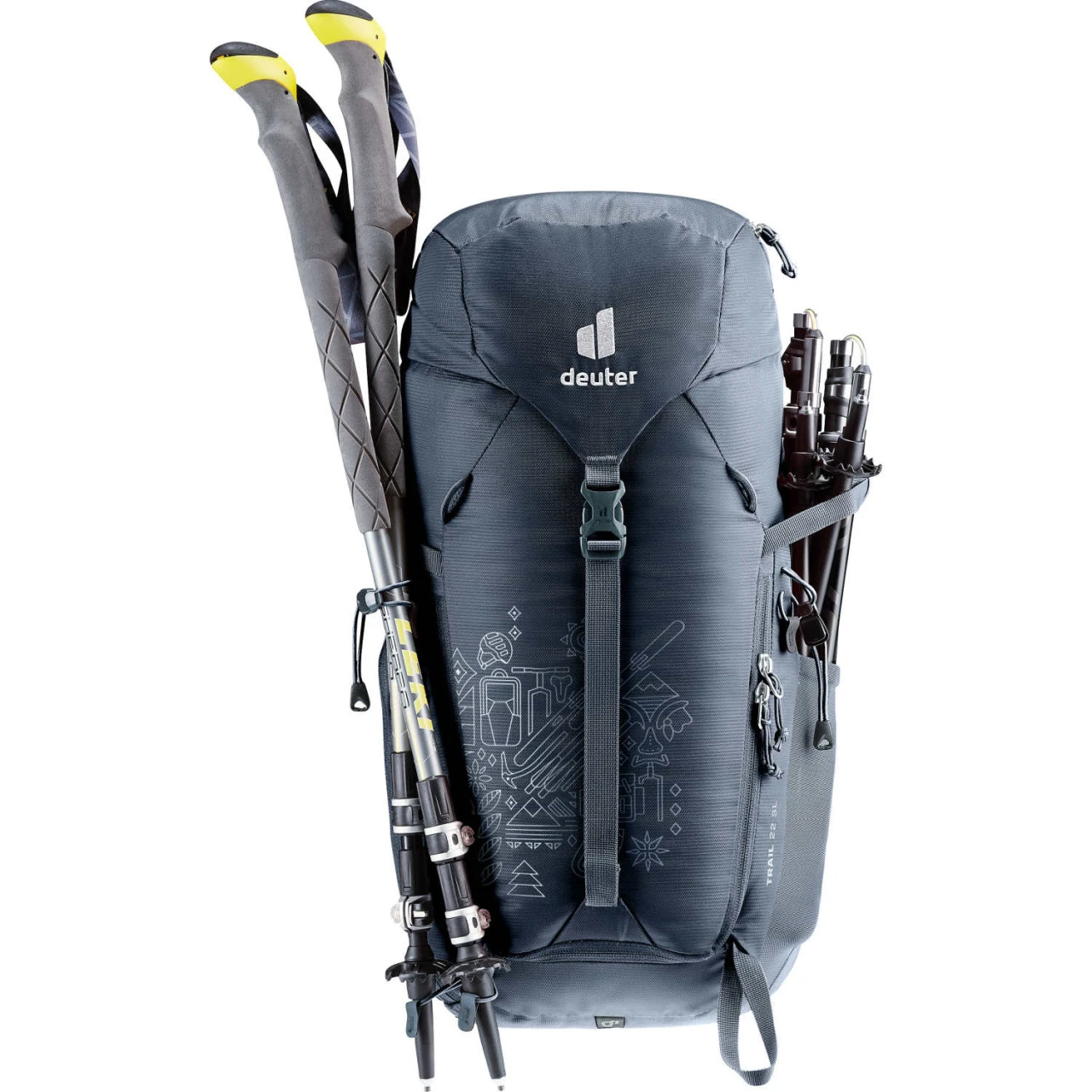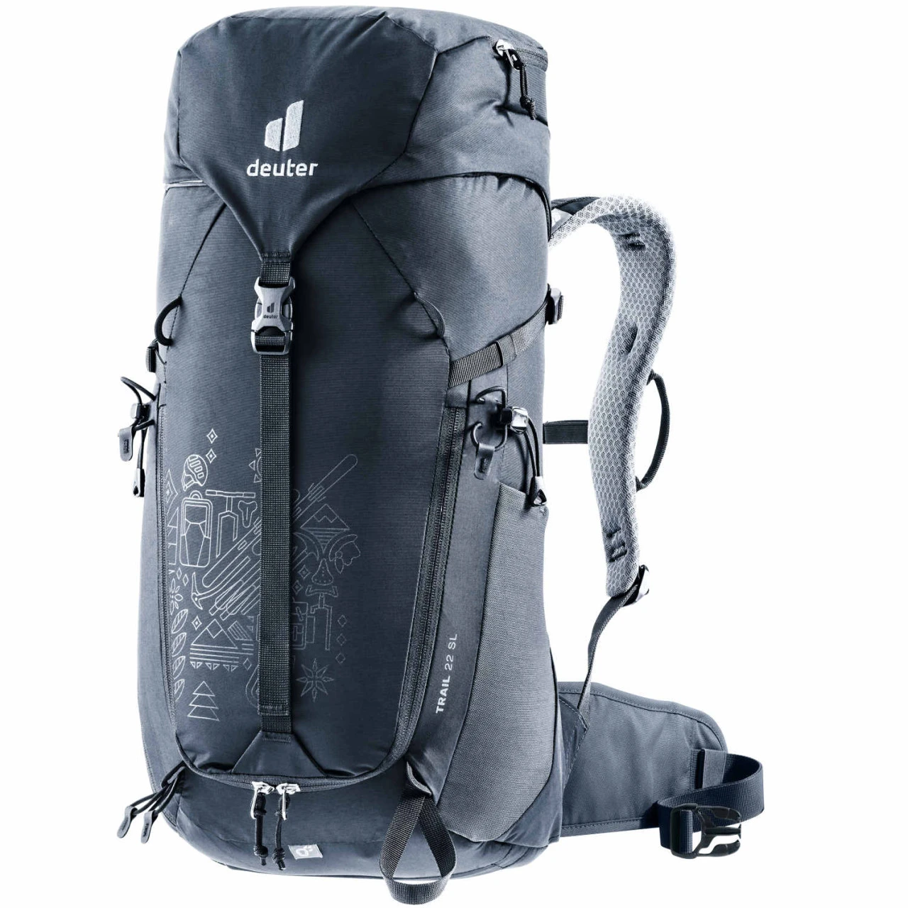 Der Deuter Trail 22 SL – 125 Anniversary Edition Damen Wander- und Kletterrucksack eignet sich ideal für Wander- und Klettersteigtouren, da er nah am Körper sitzt und eine gute Belüftung durch das Aircontact-Rückensystem bietet. Durch den flexiblen Delrin© U-Rahmen verteilt sich das Gewicht des Rucksacks gleichmäßig auf Deinem Rücken. Zu den weiteren Ausstattungsmerkmalen des Trail 22 SL – 125 Anniversary Edition Wander- und Kletterrucksack gehören unter anderem eine abnehmbare Regenhülle, ein Wertsacheninnenfach, einen stufenlos justierbaren Brustgurt, elastische Seitentaschen, ein Nasswäschefach, in dem Du deine nasse Wäsche trocknen kannst, ein schnell erreichbares Reißverschluss-Fach oben, eine elastische Fronttasche, die vielseitig nutzbar ist, eine Pickel- und Wanderstockhalterung und Karabiner-Fixierung für das Klettersteigset an den Schulterträgern. Des Weiteren besitzt der Trail 22 SL – 125 Anniversary Edition Wanderrucksack eine Pull-Forward-Verstellung, mit der Du den Hüftgurt mühelos festziehen und nach Deinen individuellen Bedürfnissen anpassen kannst. Außerdem ist der Rucksack mit einem Trinksystem kompatibel.