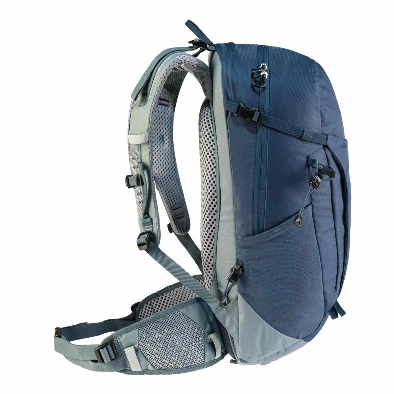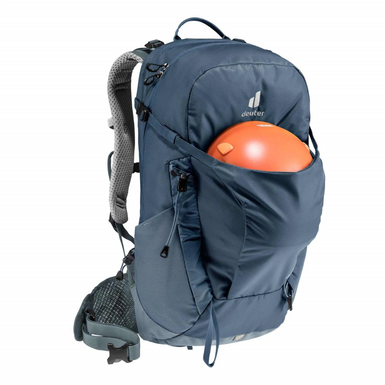Der Deuter Trail 26 Wander- und Kletterrucksack eignet sich ideal für Wander- und Klettersteigtouren, da er nah am Körper sitzt und eine gute Belüftung durch das Aircontact-Rückensystem bietet. Durch den flexiblen Delrin© U-Rahmen verteilt sich das Gewicht des Rucksacks gleichmäßig auf Deinem Rücken. Durch die offenporigen Aircontact-Polster an den beweglichen ActiveFit Schulterträgern und Hüftflossen zirkuliert die Luft ausreichend und sorgt für einen angenehmen Komfort. Zu den weiteren Ausstattungsmerkmalen des Trail 26 gehören unter anderem eine abnehmbare Regenhülle, ein Wertsacheninnenfach, einen stufenlos justierbaren Brustgurt, elastische Seitentaschen, ein Nasswäschefach, in dem Du deine nasse Wäsche trocknen kannst, ein schnell erreichbares Reißverschluss-Fach oben, eine elastische Fronttasche, die vielseitig nutzbar ist, eine Pickel- und Wanderstockhalterung und Karabiner-Fixierung für das Klettersteigset an den Schulterträgern. Des Weiteren besitzt der Trail 26 eine Pull-Forward-Verstellung, mit der Du den Hüftgurt mühelos festziehen und nach Deinen individuellen Bedürfnissen anpassen kannst. Außerdem ist der Rucksack mit einem Trinksystem kompatibel.
