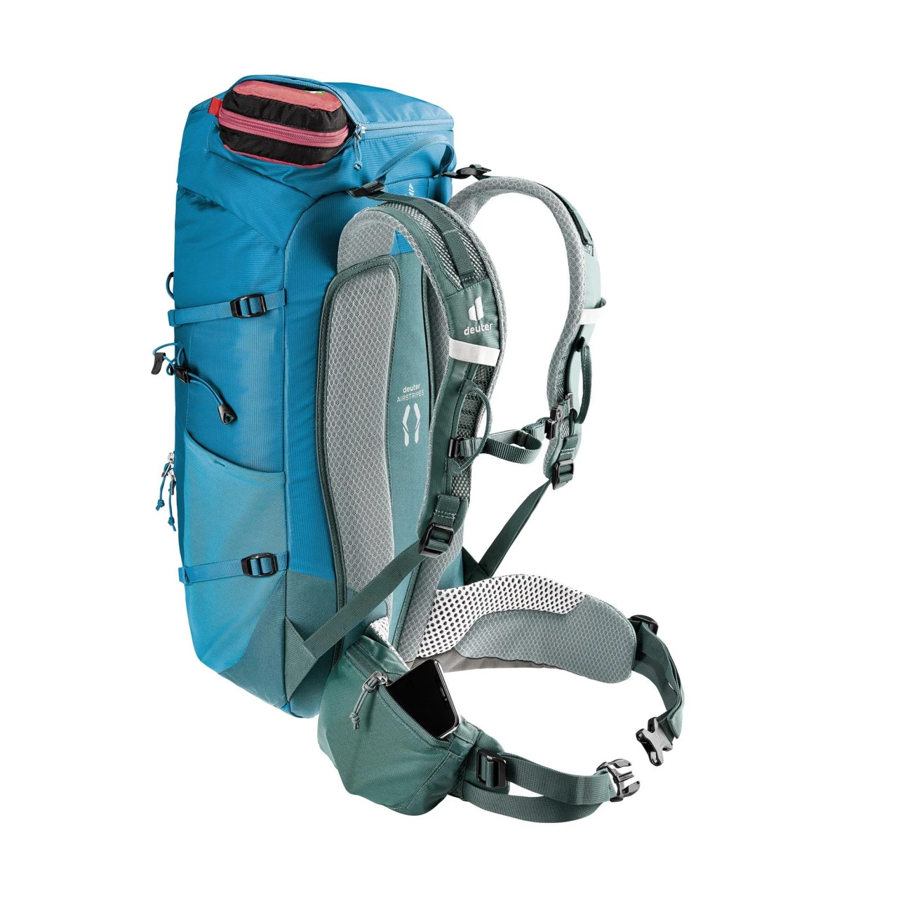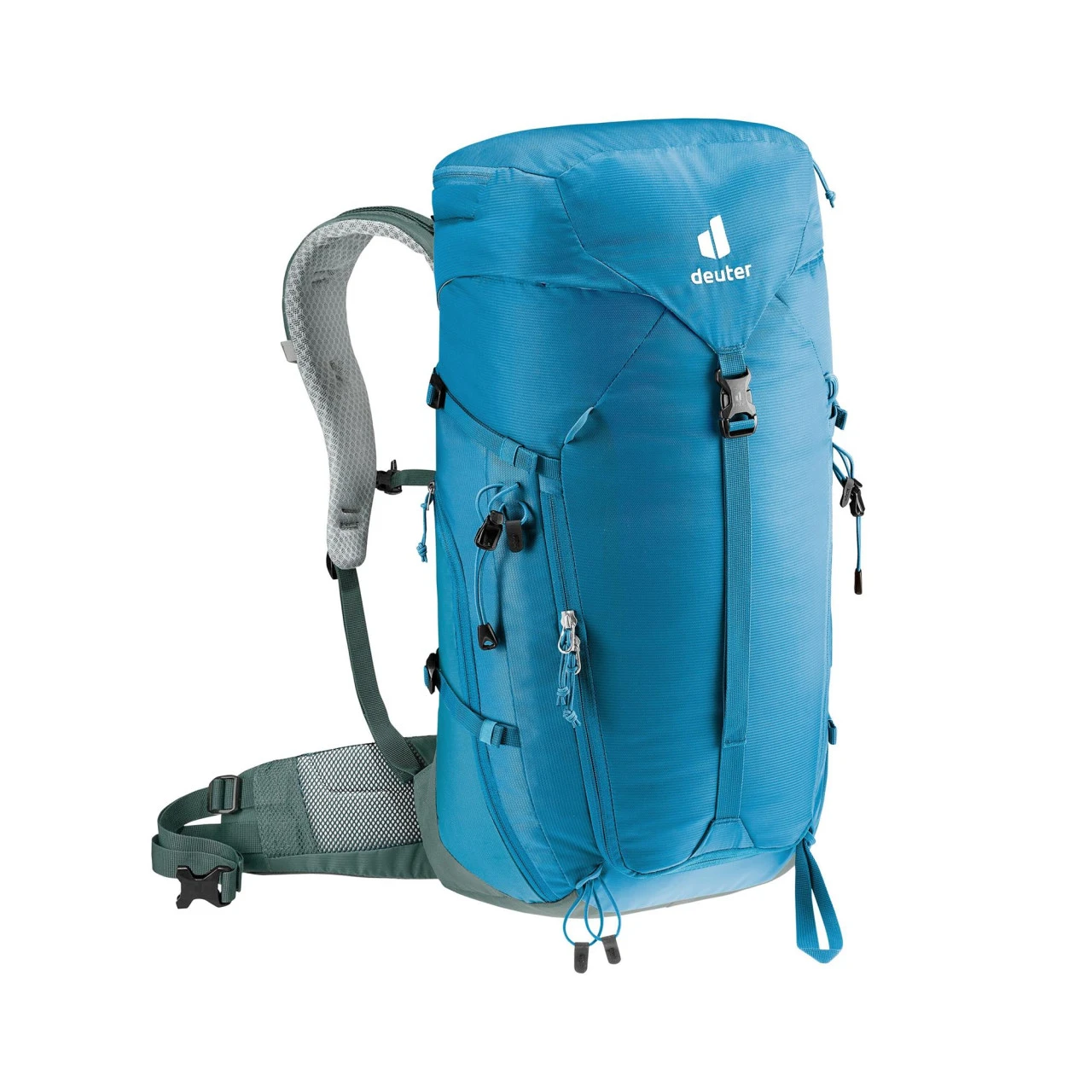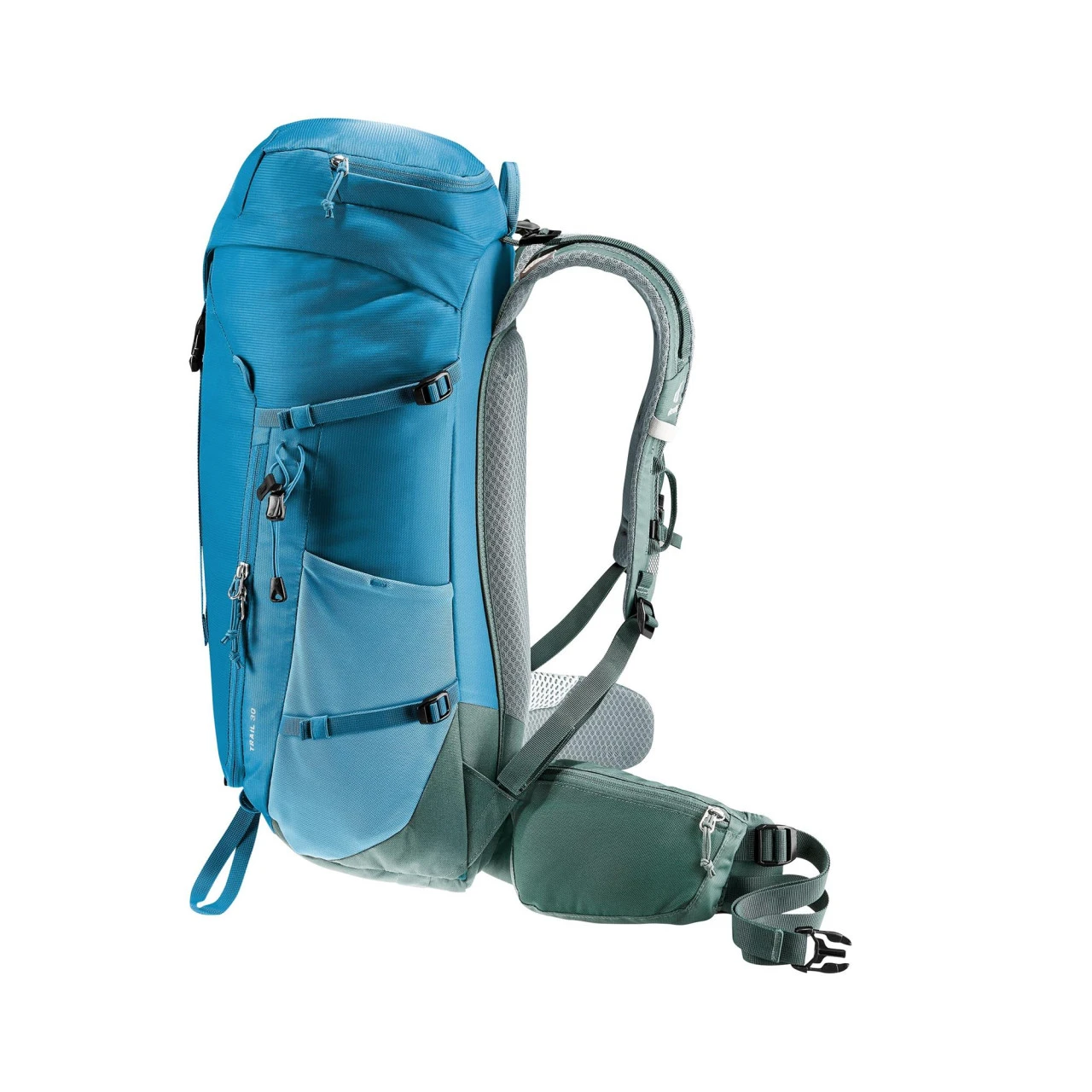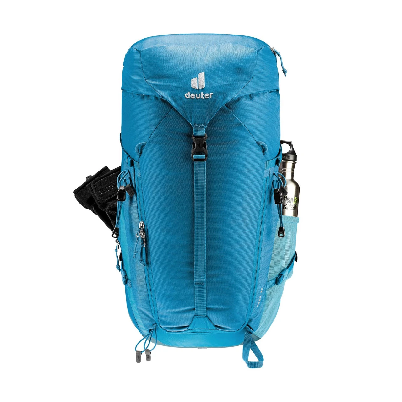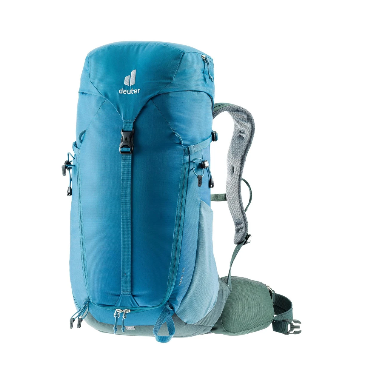 Der Deuter Trail 30 Wander- und Kletterrucksack eignet sich ideal für Wander- und Klettersteigtouren, da er nah am Körper sitzt und eine gute Belüftung durch das Aircontact-Rückensystem bietet. Durch den flexiblen Delrin© U-Rahmen verteilt sich das Gewicht des Rucksacks gleichmäßig auf Deinem Rücken. Zu den weiteren Ausstattungsmerkmalen des Trail 30 gehören unter anderem eine abnehmbare Regenhülle, ein Wertsacheninnenfach, einen stufenlos justierbaren Brustgurt, elastische Seitentaschen, ein Nasswäschefach, in dem Du deine nasse Wäsche trocknen kannst, ein schnell erreichbares Reißverschluss-Fach oben, eine elastische Fronttasche, die vielseitig nutzbar ist, eine Pickel- und Wanderstockhalterung und Karabiner-Fixierung für das Klettersteigset an den Schulterträgern. Des Weiteren besitzt der Trail 30 eine Pull-Forward-Verstellung, mit der Du den Hüftgurt mühelos festziehen und nach Deinen individuellen Bedürfnissen anpassen kannst. Außerdem ist der Rucksack mit einem Trinksystem kompatibel.