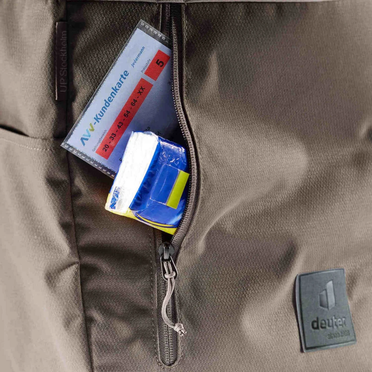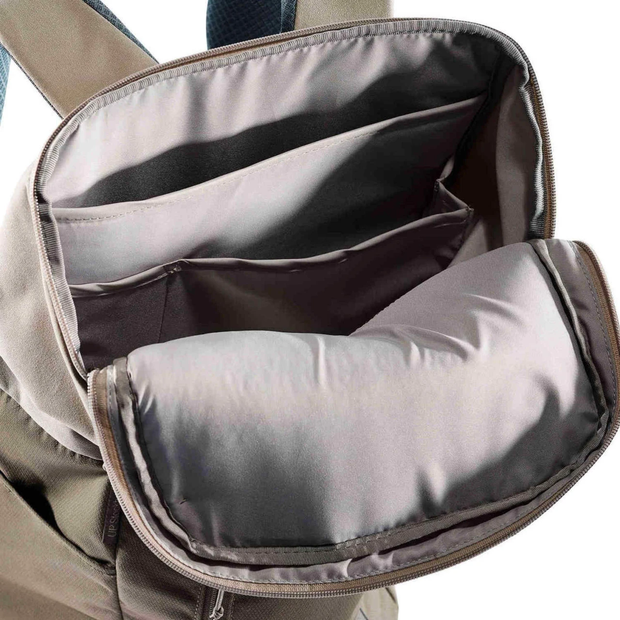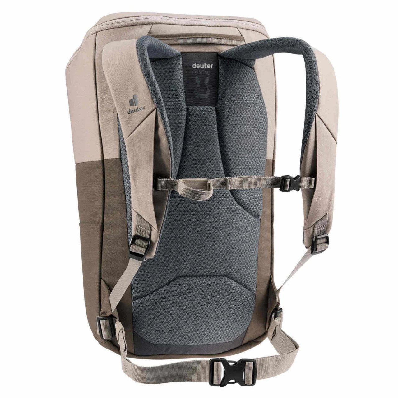 Mit dem modernen Deuter UP Stockholm Daypack Tagesrucksack im lässigem Design leistet Deuter dank seiner ressourcenschonenden Produktion einen großen Beitrag zur Umwelt. Zum einen besteht der UP Stockholm aus ca. 35 recycelten PET Flaschen (0,5 Liter) und es werden alle Stoffe nach dem bluesign® Standard hergestellt und zum anderen wird der Verbrauch von Wasser und Rohöl im Herstellungsprozess deutlich reduziert. Auch in der Produktion wird ein deutlich geringerer CO2 und Energieverbrauch benötigt. Im UP Stockholm findet nahezu alles Platz was Du im Büro, der Uni oder Freizeit brauchst. Durch das Contact-Rückensystem sitzt der Rucksack fest am Rücken und die S-förmigen Schulterträger weisen einen angenehmen Komfort auf. Des Weiteren besitzt der Rucksack einen abnehmbaren Bauchgurt und einen abnehmbaren und justierbaren Brustgurt. Mit der großen Überschlag-Reißverschluss-Hauptöffnung kannst du das Volumen nochmal um ca. 10 Liter erweitern. Die große Zwei-Wege-Reißverschluss-Öffnung bietet Dir einen guten Zugang zum Gepäck. Das große Hauptfach besitzt ein separates, gepolstertes Notebook/Laptopfach (15″), ein Tabletfach und ein Flaschen-Steckfach. Zu den weiteren Ausstattungsmerkmalen des UP Stockholm gehören unter anderem ein Wertsacheninnenfach mit integriertem Schlüsselclip, ein großes Reißverschluss-Frontfach, zwei offene Seitentasche und einen gepolsterten und standfesten Boden.