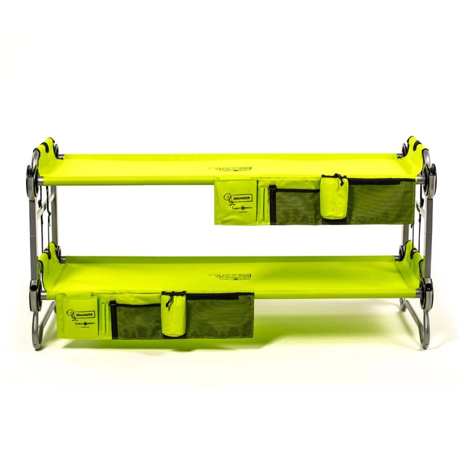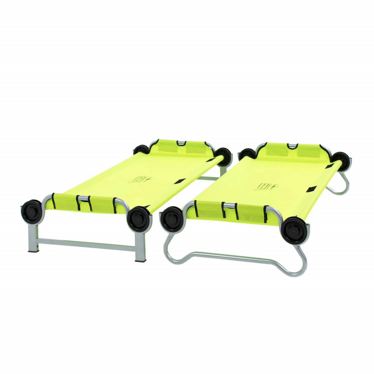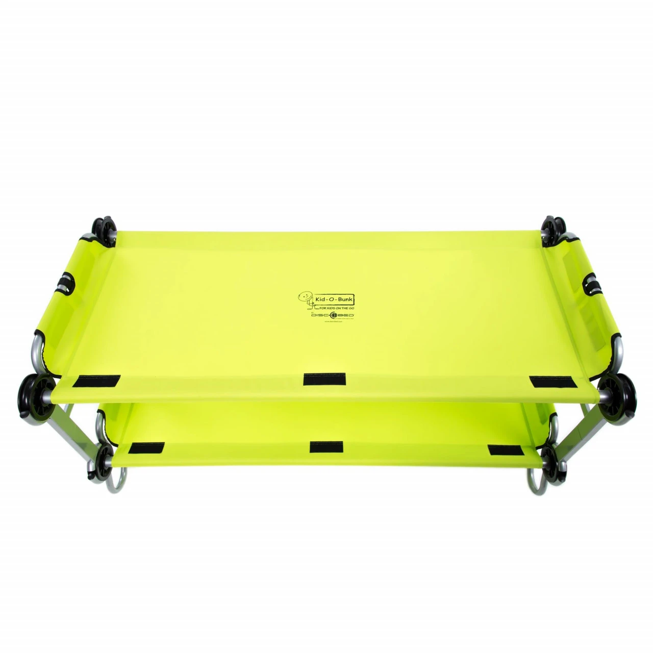 Das Disc-O-Bed Kid-O-Bunk ist perfekt für Campingausflüge, Übernachtungspartys oder den Besuch bei den Großeltern. Dieses Etagenbett eignet sich optimal für unternehmungslustige Kinder zwischen 7 und 12 Jahren. Das Bett kann als 2 Einzelbetten oder, um Platz zu sparen, als Etagenbett benutzt werden. Wenn die Kinder Platz zum Chillen brauchen, kann das Disc-O-Bed Kid-O-Bunk auch in eine Sitzbank verwandelt werden. Die Liegematten können einfach abgenommen und gereinigt werden. In den 2 praktischen Seitentaschen, die direkt an der Matte befestigt werden, können die wichtigsten Gegenstände wie Handy, Brille oder Buch bequem verstaut werden und sind jederzeit griffbereit. Damit deine Kinder sicher schlafen können, ist das Disc-O-Bed Kid-O-Bunk TÜV geprüft. Zudem bietet dir der Hersteller 5 Jahre Garantie.