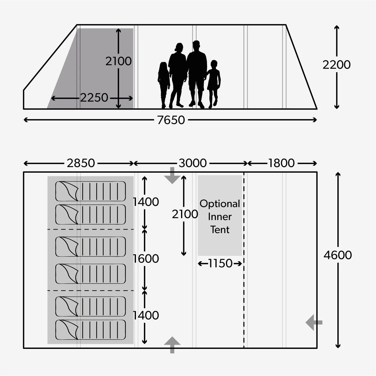 Das Dometic Ascension FTX 601 TC Familienzelt wird dich auf deinem nächsten Familienurlaub zuverlässig begleiten und dir und deiner Familie einiges an Platz bieten. In den drei abgedunkelten Schlafkabinen finden bis zu sechs Personen Platz, zudem kann eine weitere Schlafkabine hinzugefügt werden (optional Erwerbbar). Hinter den Seitentüren, die sich links und rechts vor den Schlafkabinen befinden, sind Moskitonetze integriert. In dem großen Vorraum des Dometic Ascension FTX 601 TC Familienzeltes könnt ihr euch gemütlich aufhalten, selbst wenn das Wetter mal nicht mitspielt oder du einen Moment im Schatten genießen willst. Der Raum hinter der Schlafkabine lässt sich bestens als Stauraum verwenden.