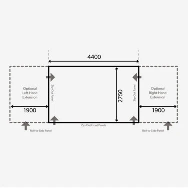 Bei dem Dometic Club AIR Pro 440 S Wohnmobilvorzelt trifft modernste Vorzelttechnologie auf klassische Optik. Durch die gerade Front kannst du die komplette Vorzelttiefe von 2,75 m ausnutzen und den Raum wohnlich gestalten, damit du dich in deinem Urlaub wie zuhause fühlst. Die herausnehmbaren Front- und Seitentüren sorgen dafür, dass du dich wie unter einer überdachten Terrasse sitzt. Eingebaute Moskitonetze in den Seitentüren schützen dich vor lästigen Insekten wenn du nachts dein Dometic Club AIR Pro 440 S Wohnmobilvorzelt lüften willst. Die Apex-Belüftung verbessert die Luftzirkulation im Zelt und es entsteht weniger Kondenswasser, was das Raumgefühl deutlich verbessert. Die Anschlusshöhe des Vorzeltes beträgt 235 – 265 cm. Dank des neuen variablem Anschlusshöhensystem kannst Du Wohnmobilvorzelt problemlos mittels eines Reißverschlusses, der oberhalb der Seitentür vernäht ist, auf unebenem Boden ausgleichen.