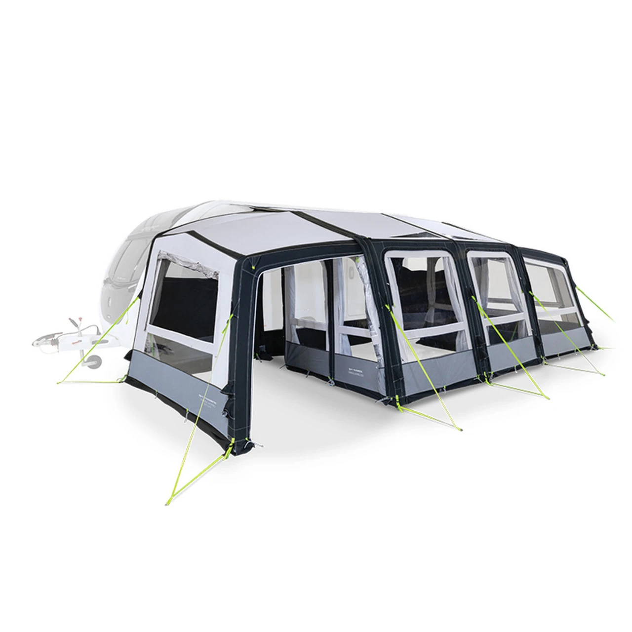 Der Dometic Grande AIR Pro Extension L/H S Anbau links erweitert Dein Dometic Grande AIR Pro 390 S Vorzelt um weitere Schlafplätze, mehr Stauraum, als Küche oder einen überdachten Eingang. Er wird mittels Reißverschlusses ganz einfach an der Seite Deines Vorzeltes angebracht und an einem Punkt aufgeblasen. Des Weiteren verfügt der Grande AIR Pro Extension L/H S über große Fenster, die viel Licht in den Anbau hineinlassen. Das seitliche Fenster ist mit einem Moskitonetz ausgestattet, sodass du auch bei geschlossenem Anbau lüften kannst, ohne das Insekten hineinkommen. Bei Bedarf kann ein Innenzelt (nicht im Lieferumfang enthalten) für Übernachtungsgäste angebracht werden. Im Zusammenspiel mit dem Dometic Grande AIR Pro Extension R/H S Anbau rechts erweiterst Du Dein Vorzelt enorm.