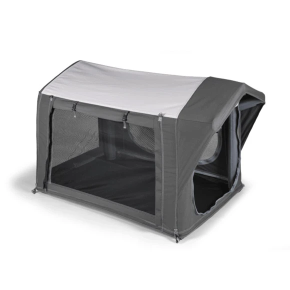 Die Dometic K9 80 AIR Hundehütte ist eine aufblasbare Hundehütte und eignet sich somit ideal für unterwegs. Sie ist aus einem leichten und robusten Stoff gefertigt. Integrierte Netzeinsätze ermöglichen deinem Hund eine angenehme Luftzufuhr und einen Blick nach draußen. Der Boden ist herausnehmbar und kann bei Bedarf ganz einfach gereinigt werden. Durch die Tragegriffe kannst du die K9 80 AIR Hundehütte einfach transportieren und so deinen Hund zum nächsten Abendteuer mitnehmen.