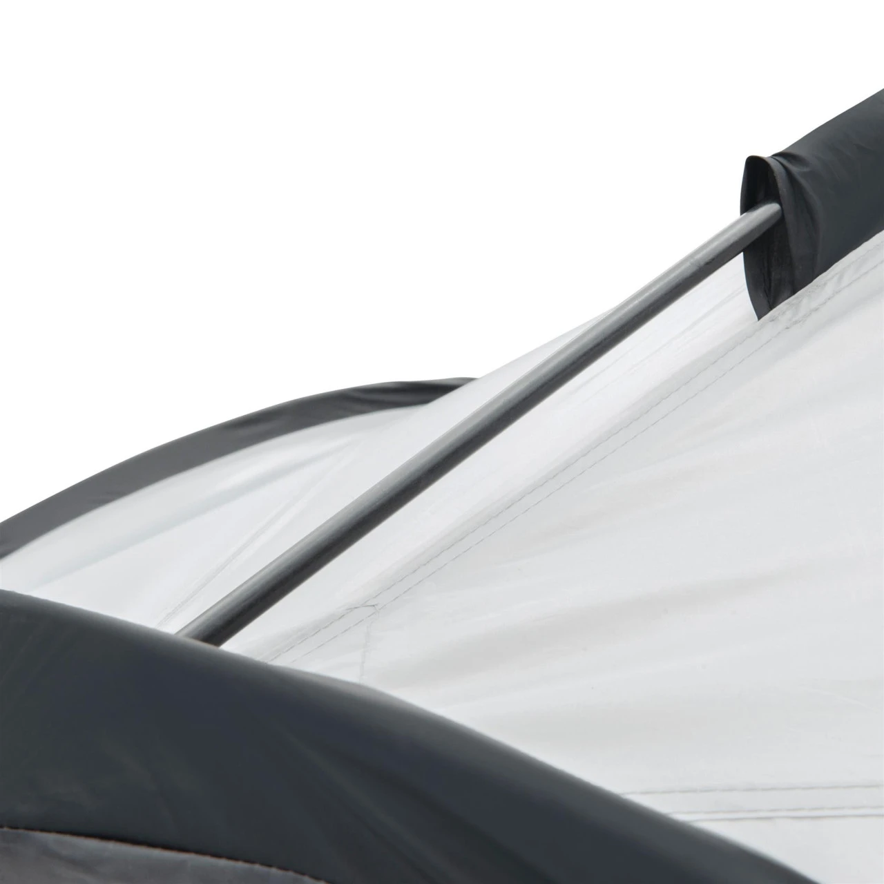 Wenn das Wetter umschlägt und ihr die Party nach „drinnen“ verlegen wollt, könnt ihr ganz einfach das mitgelieferte Innenzelt einhängen. Damit Licht hineinkommt, gibt es beiden Seiten des Innenzeltes Fenster. Wenn ihr das Innenzelt als Schlafkabine nutzen wollt, macht ihr die Fenster mit Vorhängen zu. Die breite Eingangstür hat im oberen Bereich einen Mesh-Einsatz, der mit einem Vorhang zugemacht werden kann.