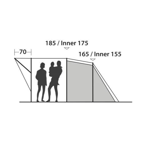 Die Zelteingang ist durch ein Vordach vor Regen geschützt. Der fest eingenähte wasserdichte PE-Boden kann im Bereich der Tür nach unten geklappt werden. Das sorgt für ein stolperfreies Betreten und Verlassen des Zeltes. Außerdem lässt sich das Zelt so auch gut auskehren. Die großen Fenster im Wohnraum können mit einem Vorhang zugemacht werden, wenn ihr keine neugierigen Blicke der Nachbarn haben wollt.
