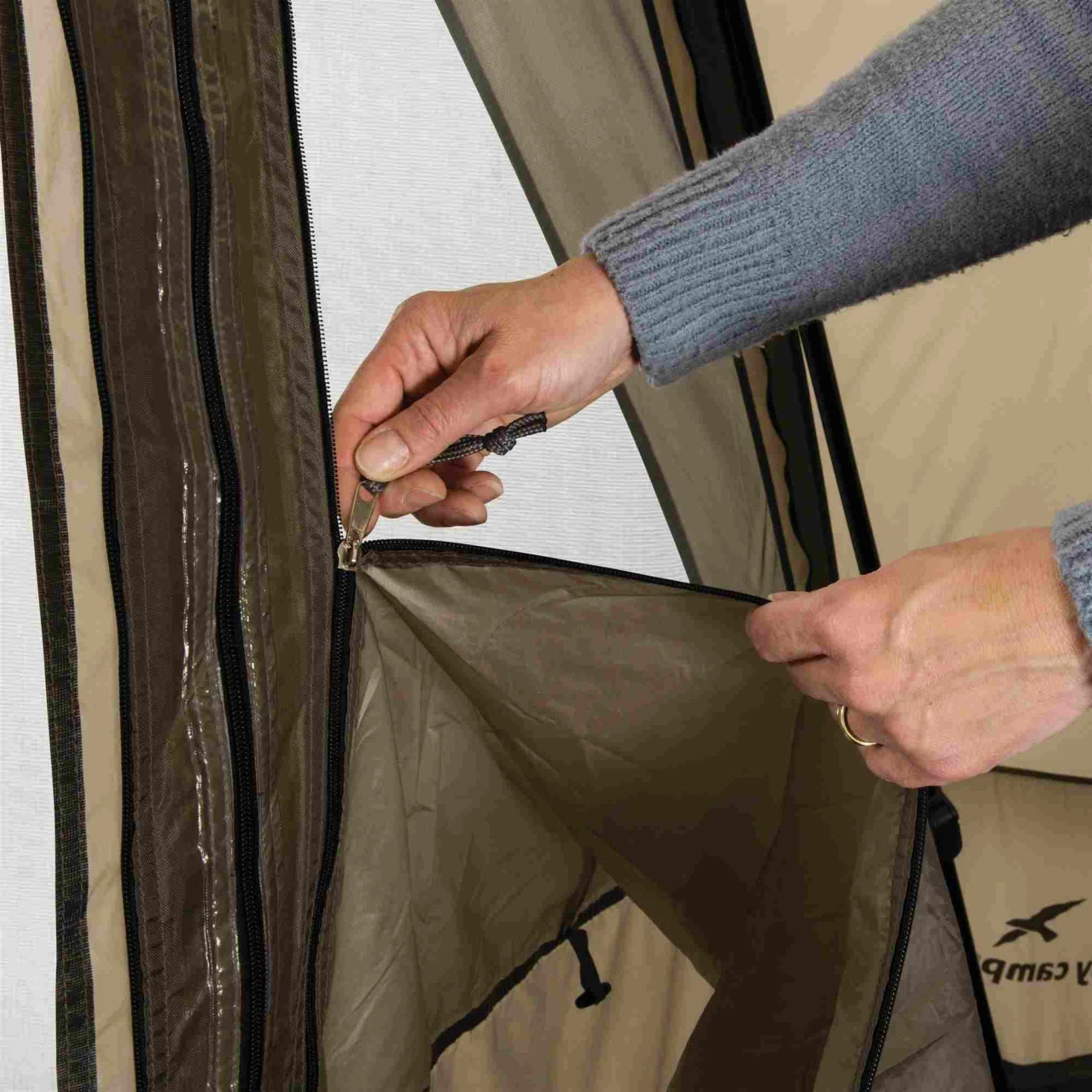 - Zeltboden im Türbereich herunterklappbar – das erleichtert die Reinigung des Zeltes