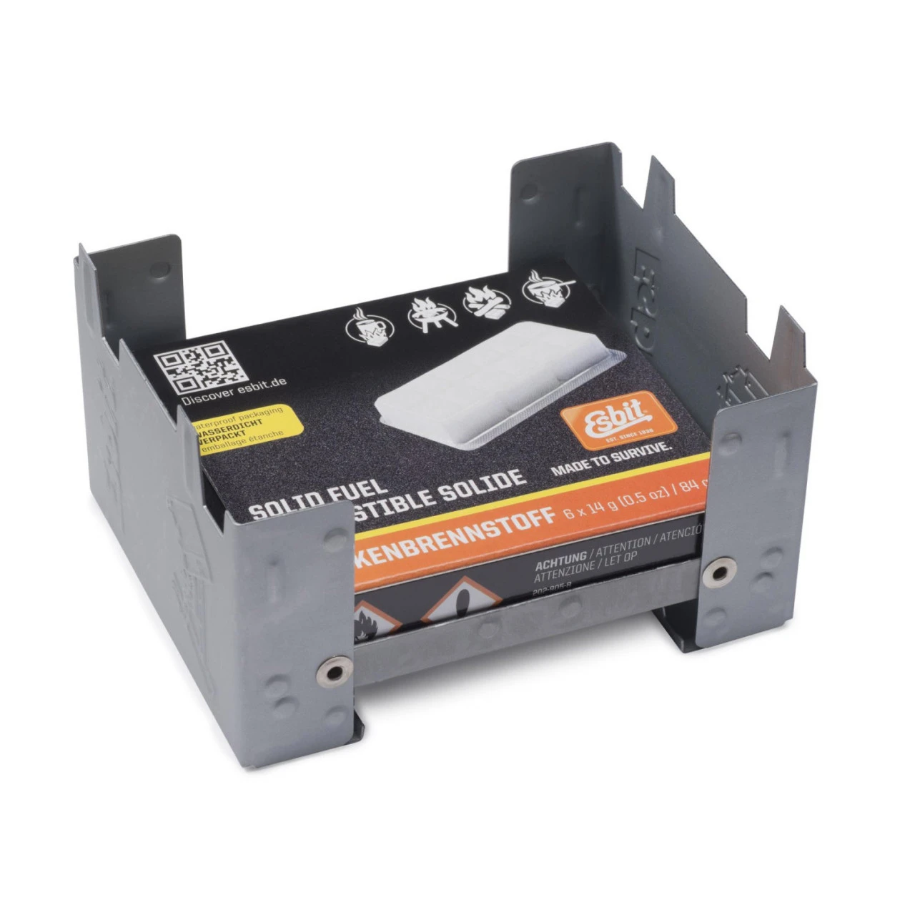 Der Esbit Taschenkocher „Klein“ 6x14g ist aus verzinktem Stahl. Zum Lieferumfang gehören 20 Trockenbrennstoff-Tabletten. Die Kocher-Position kannst Du stufenweise ändern. Der Esbit Taschenkocher „Klein“ ist sekundenschnell aufgebaut.