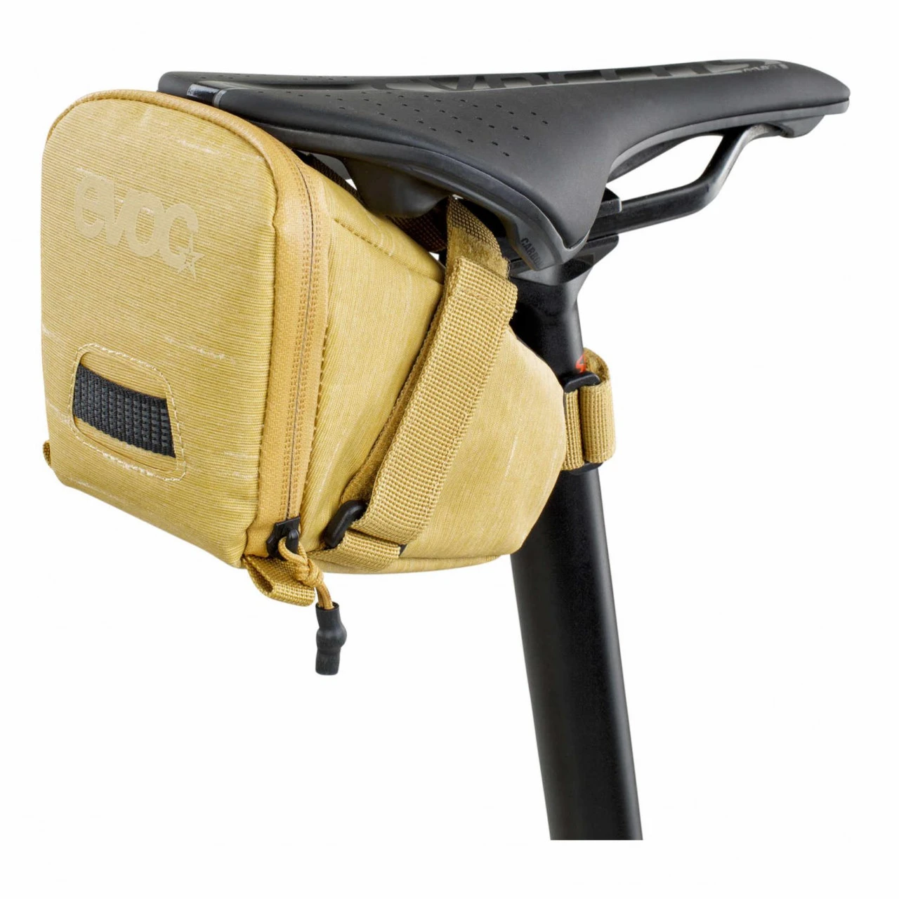 Die EVOC Seat Bag Tour L ist eine leichte Satteltasche aus stark wasserabweisendem Material, welche sich mit einem Klettverschluss einfach an reguläre Sattelstützen montieren lässt und dir ausreichend Platz für Werkzeug und Ersatzschlauch bietet.