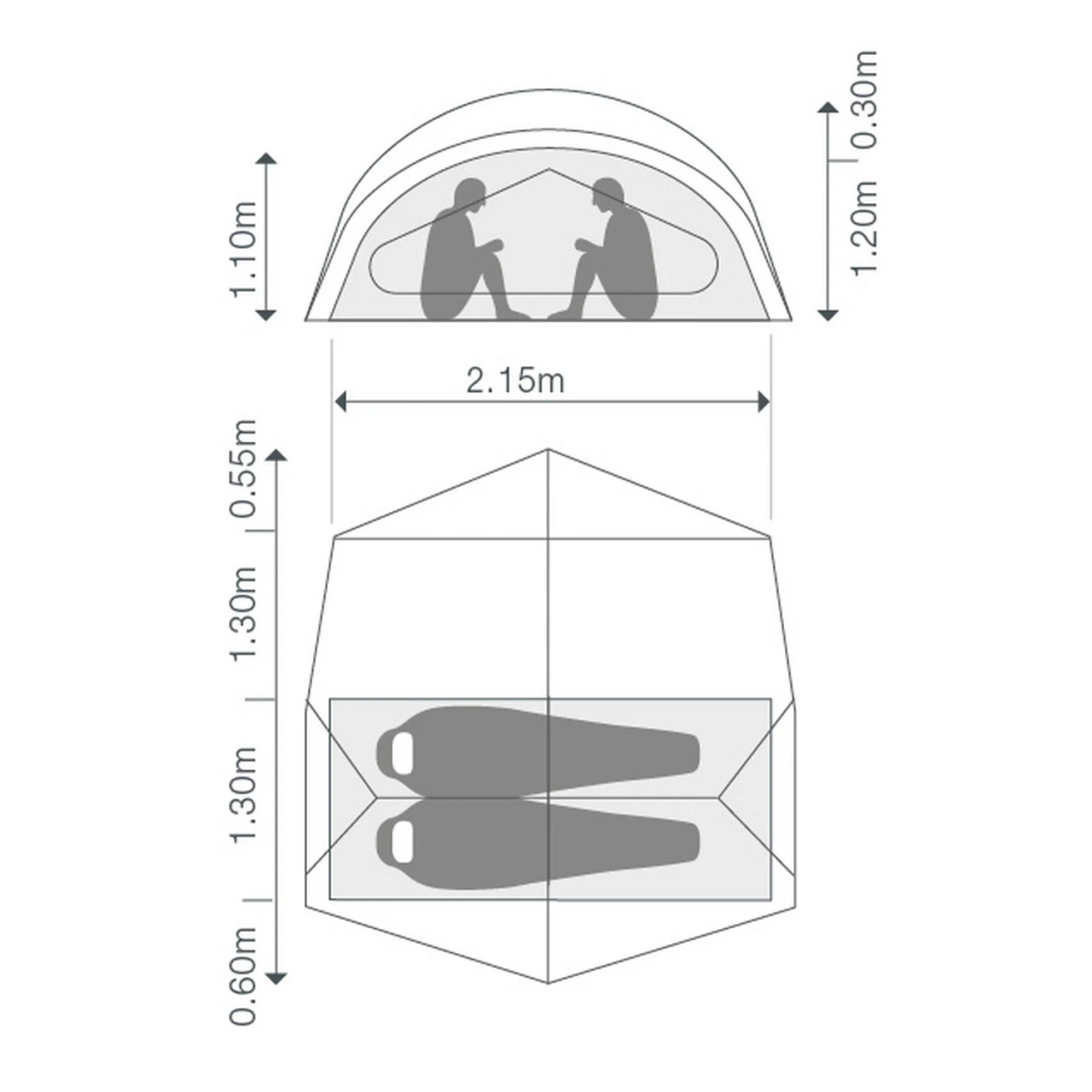 Die Gestängekonstruktion schaffte am Haupteingang eine große Apsis, die als Wohn- oder Stauraum genutzt werden kann. Das Außenzelt lässt sich auf verschiedene Arten öffnen, so dass eine große Flexibilität gegeben ist. An der Rückseite des Outer Space II gibt es eine zweite, kleinere Apsis, die auch ideal als Stauraum genutzt werden kann, durch die man aber auch ins Innenzelt gelangt. Das Innenzelt besteht aus Moskitonetz, so dass es eine optimale Belüftung bietet. Im Innenzelt gibt es zwei Seitentaschen, in denen du die wichtigsten Dinge, die du schnell zur Hand haben willst, verstauen kannst.