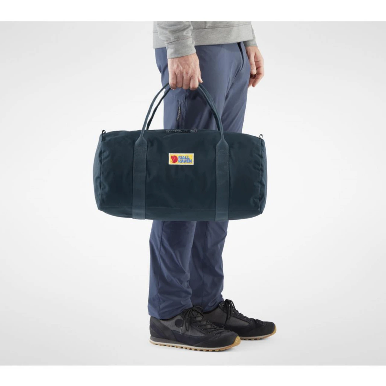 Die Fjällräven Vardag Duffel 30 Reisetasche bietet Dir jede Menge Stauraum für Deine Sportkleidung oder einen Wochenendtrip. Das robuste G-1000® HeavyDuty Eco S-Material, welches aus recycletem Polyester und Bio-Baumwolle besteht, ist atmungsaktiv, wasser,- und windabweisend. Auch Mücken und UV-Strahlen haben keine Chance durch das Material zu dringen. Die leicht zugängliche Außentasche und die beiden Innentaschen aus Mesh sorgen für Ordnung. Du kannst die Vardag Duffel 30 Reisetasche dank der robusten Griffe, die mit einem gepolsterten Gurtband miteinander verbunden werden können, und des abnehmbaren Schulterriemen bequem tragen.