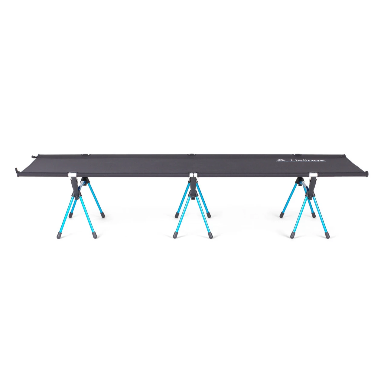 Das Helinox High Cot One Large Feldbett sorgt mit seiner extra langen Liegefläche jetzt für noch mehr Komfort auch für große Menschen. Die Liegehöhe wird durch die stabilen Beine aus DAC Aluminium auf 38 cm angehoben. So kannst du auch bequem auf deinem High Cot One sitzen und deine Ausrüstung darunter verstauen. Durch das kleine Packmaß kannst du dein Helinox High Cot One Feldbett auf längeren Touren auch in Rucksack immer dabei haben.