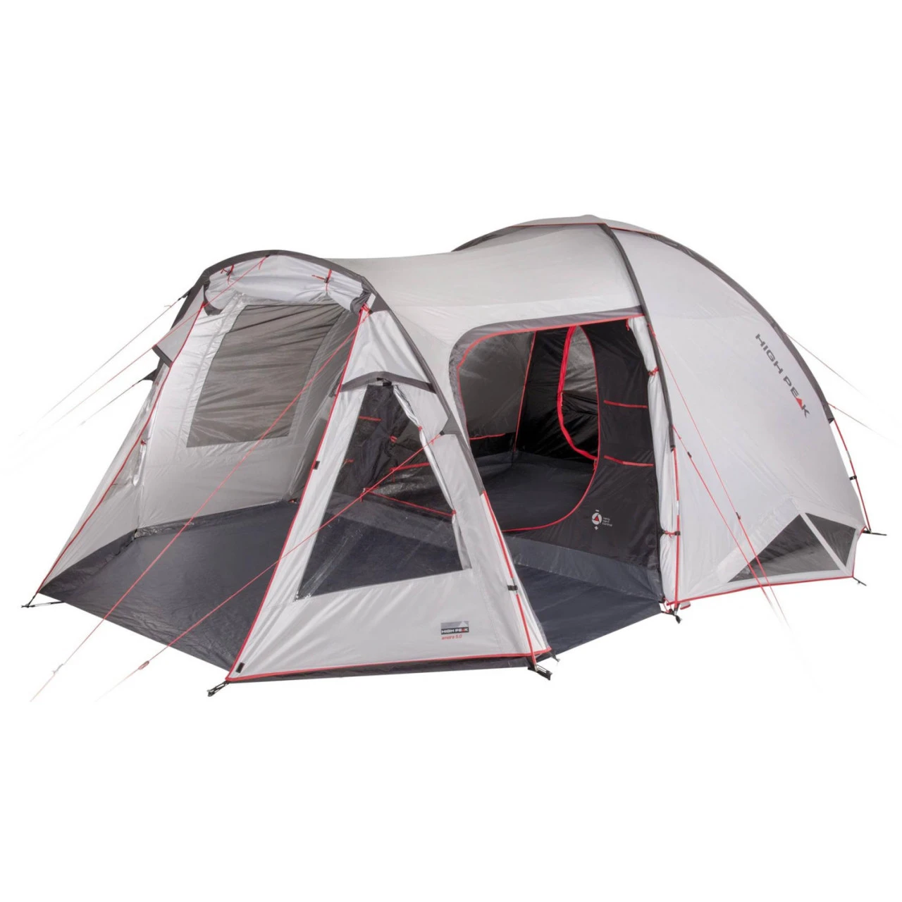 Das High Peak Amora 5.0 Familienzelt bietet vier bis fünf Personen Platz. Eingeteilt in ein Innenzelt und einen Vorraum, ist beides vom besonders UV-beständigen Gewebe des Außenzeltes überspannt und erhöht so die Lebensdauer Deines Zeltes enorm. Der Vorbau im Tunneldesign ermöglicht optimale Raumnutzung: Hier kann an regnerischen Tagen gesellschaftlich zusammengesessen werden, während die großen Fensterflächen viel Licht ins Innere leiten und der eingenähte Zeltboden Nässe und Schmutz draußen halten. Die Kombination aus Hochentlüftung, Dauerventilation und Bodenventilation schafft ein angenehmes Zeltklima, auch bei starker Sonneneinstrahlung und kann individuell reguliert werden. Eine abgedunkelte Schlafkabine mit Organizer und Innentaschen erleichtert den Campingalltag und rundet das Design des Amora 5.0 ab.