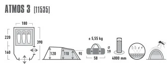 Das HighPeak Atmos 3 Campingzelt bietet Schlafmöglichkeiten für 3 Personen. Die Schlafkammer ist am Dach an der Hinterseite mit abgedeckten Lüftungsöffnungen versehen um auch bei schlechtem Wetter mit Frischluft versorgt werden zu können. Zusätzlich sorgt das atmungsaktive, PU-beschichtete Außenzelt für Sauerstoffaustausch. Der Vorraum bietet die Möglichkeit Gepäck im Trockenen abzustellen. Mit drei Klarsichtfolien-Fenstern ist für reichlich Tageslicht gesorgt. Das Atmos 3 ist das ideale Einsteigerzelt für Familien um mit wenig Gewicht und einfachem Aufbau auf Entdeckungsreise in die Outdoorwelt zu gehen.