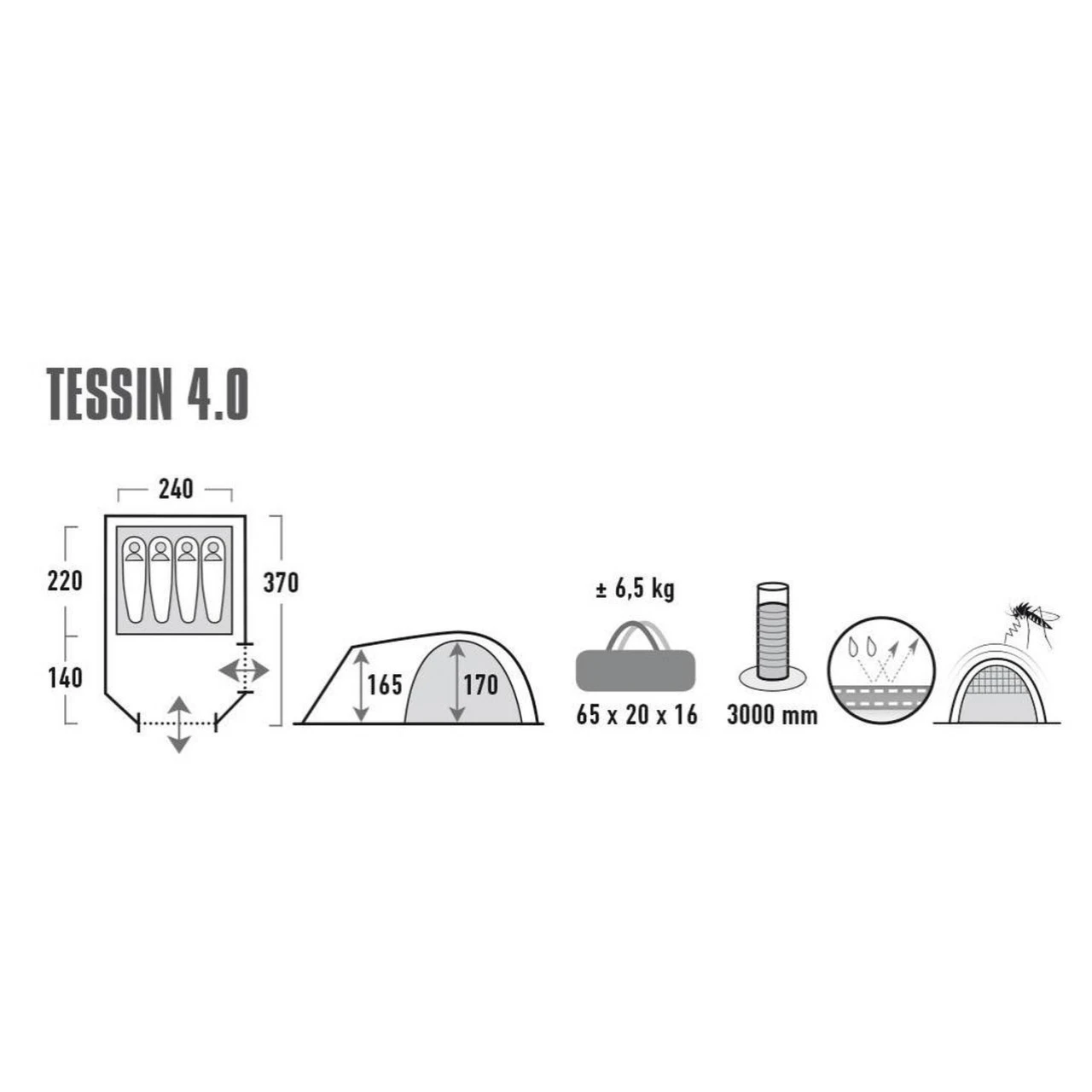Das High Peak Tessin 4.0 Familienzelt vereint ein Innenzelt im klassischen Kuppeldesign mit einem Vorbau in Tunnelform in einer Höhe von 165-170cm, der Dir jede Menge Stau- und Aufenthaltsraum schenkt. Hier finden bis zu vier Personen einen Schlafplatz. Der besonders hohe UV-Schutz des Außenmaterials ist ein starkes Argument für dieses Zelt, da hierdurch die Lebensdauer Deines Zeltes enorm gesteigert wird. Ein abgedunkeltes Innenzelt mit praktischen Ausstattungen wie Organizern, Wannenboden und Moskitonetz rundet das Design des Tessin 4.0 ab.