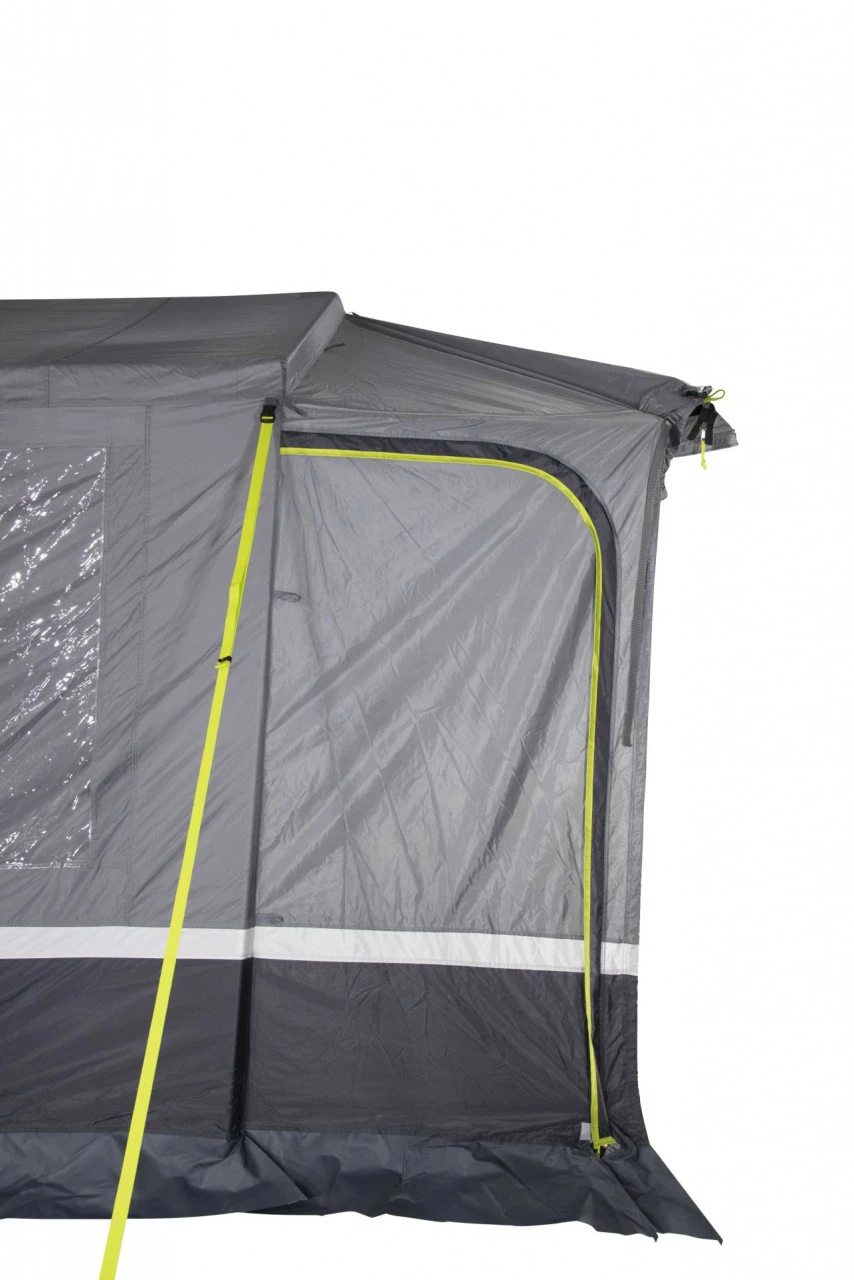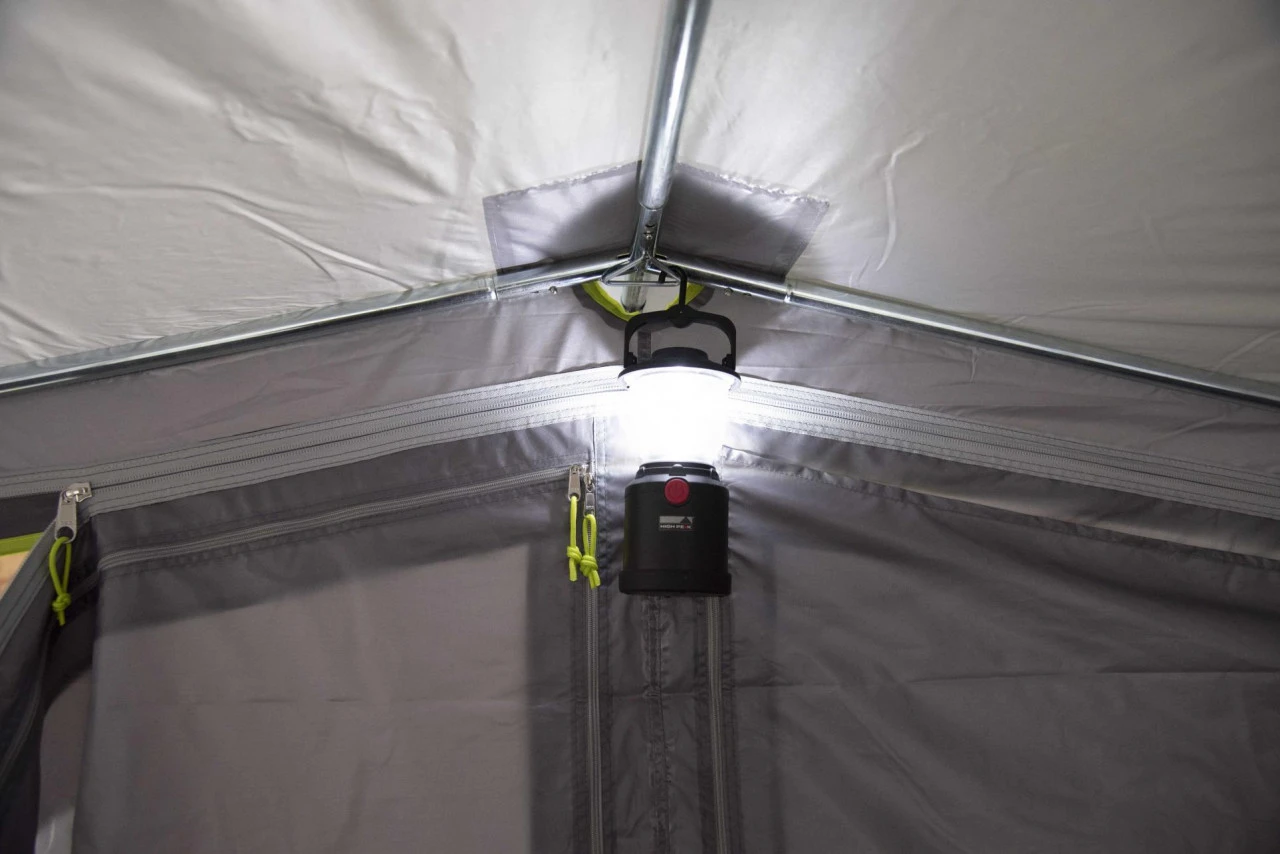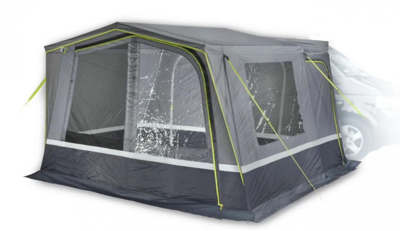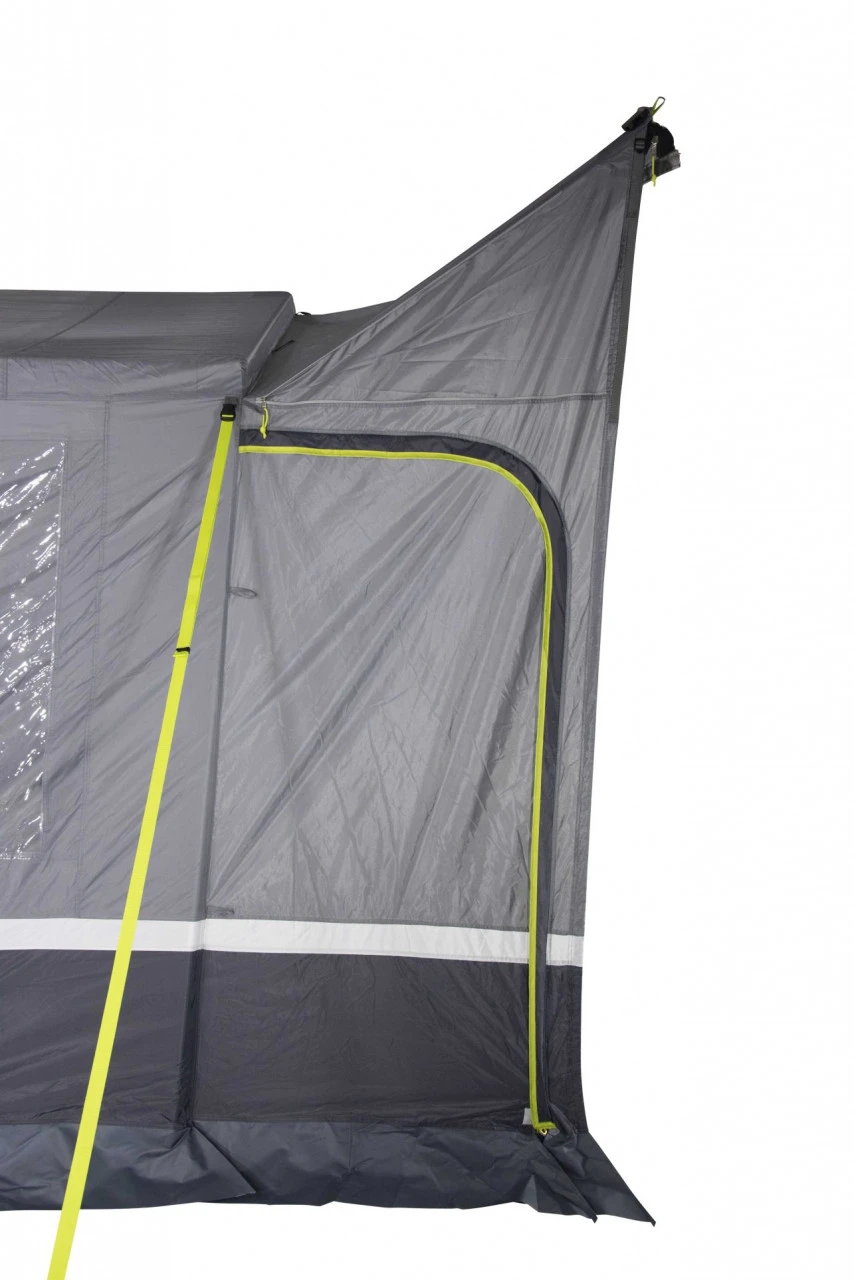 Das High Peak Tramp 2.0 Busvorzelt ist ein freistehendes Kuppelzelt, in dem bis zu 2 Personen Platz finden. Die freistehende Funktion eignet sich besonders gut, wenn Du mit Deinem Bus einen Ausflug machen möchtest. Dafür muss es dann nicht extra abgebaut und weggepackt werden. In das Innere des Zeltes gelangst Du durch den Haupteingang. Der Haupteingang kann zusätzlich als Sonnendach umgerüstet werden und bietet Dir an sonnigen Tagen ein schattiges Plätzchen. Das Tramp 2.0 hat durch die Steilwand mit Rundbogendach eine optimale Raumnutzung. Für noch mehr Komfort kannst Du ein Innenzelt dazu bestellen, welches Du als Schlafkabine nutzen kannst. Durch seine zwei großen Klarsichtfolien-Fenster und einem Mesh-Fenster ist das Zelt angenehm hell. Bei Bedarf können diese Fenster aber auch mit der Vario Reißverschluss-Abdeckung geschlossen werden. Für eine angenehme Luftzirkulation im Zelt sorgt die Hochentlüftung. Wenn Du bei gutem Wetter gern ein luftiges Vorzelt haben möchtest, kannst Du auch Veranda Front offenhalten und wie auf einer überdachten Veranda im Grünen sitzen. Zu den weiteren Ausstattungsmerkmalen des Tramp 2.0 gehören eine aufrollbare Schleuse, vier Sicherheits-Sturmbänder, eine verschließbare, teilbare 50/50 Rückwand mit Easy Stow Away Tasche, drei Klettbandschlaufen für die Dachreling und ein Hohlraum-Schleusenstab.