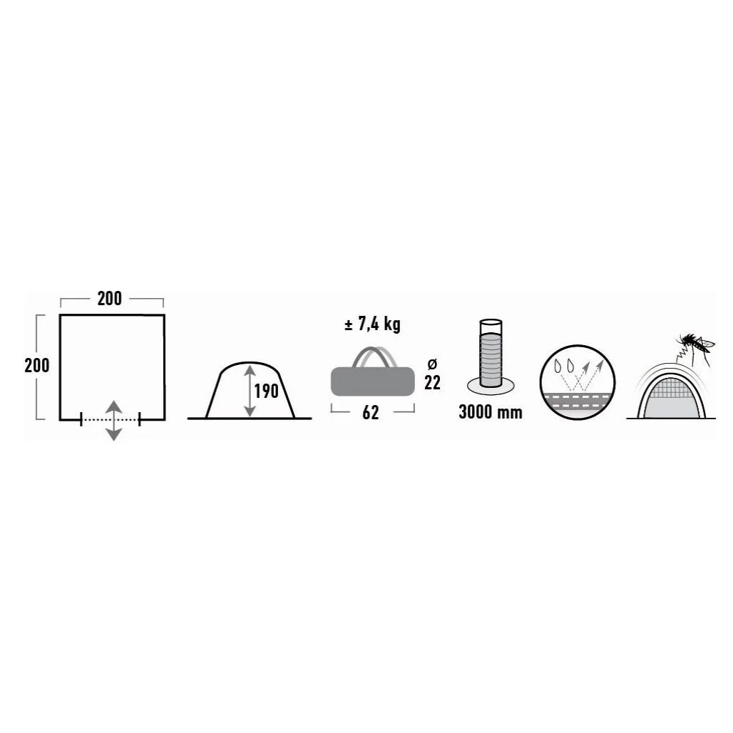 | Material Außenzelt | 150D Hypertex Polyester PU |