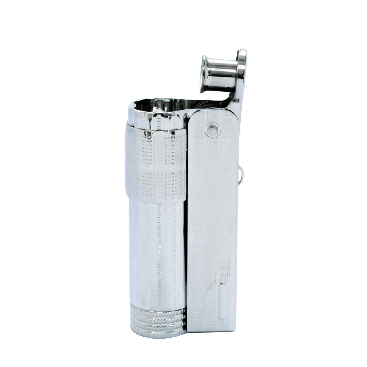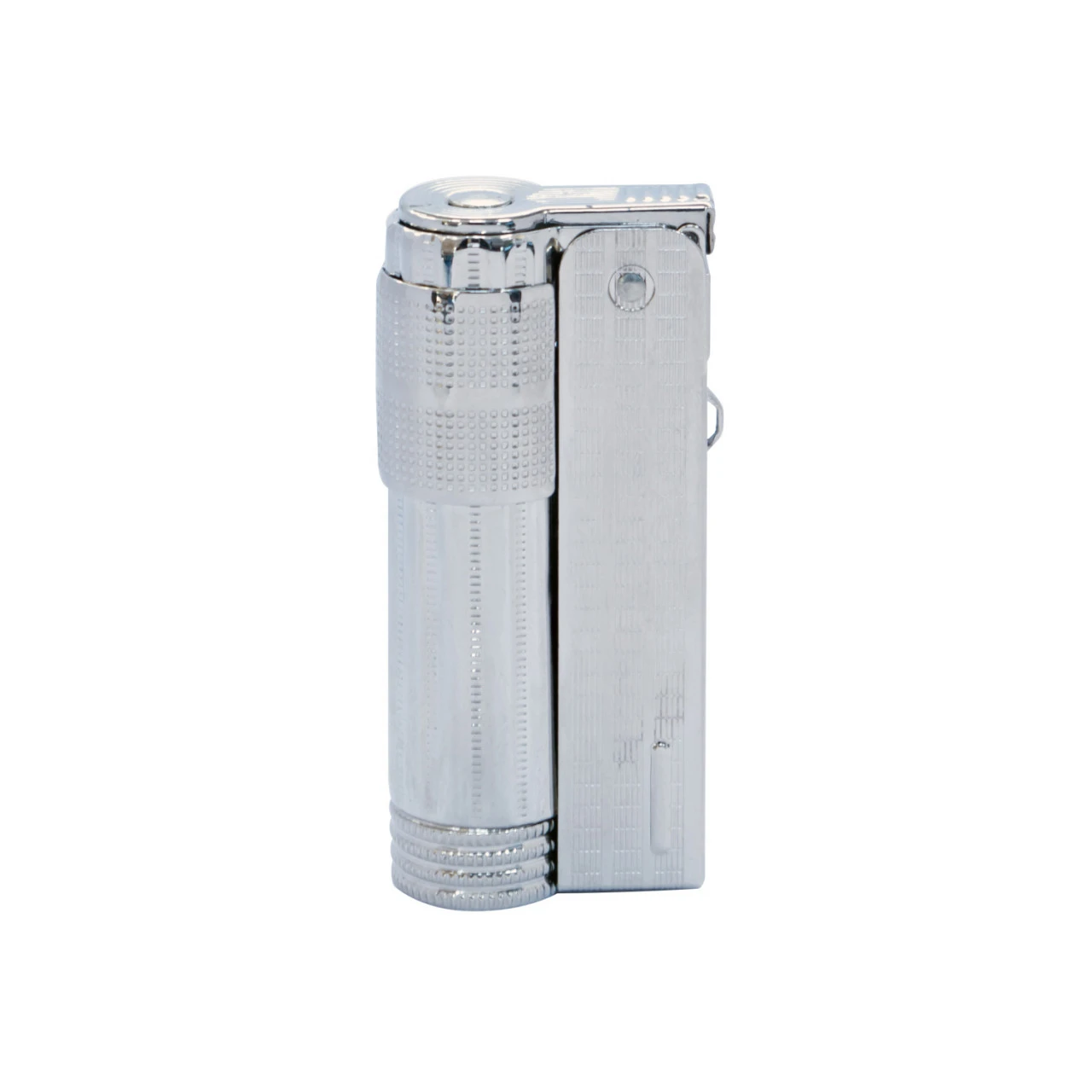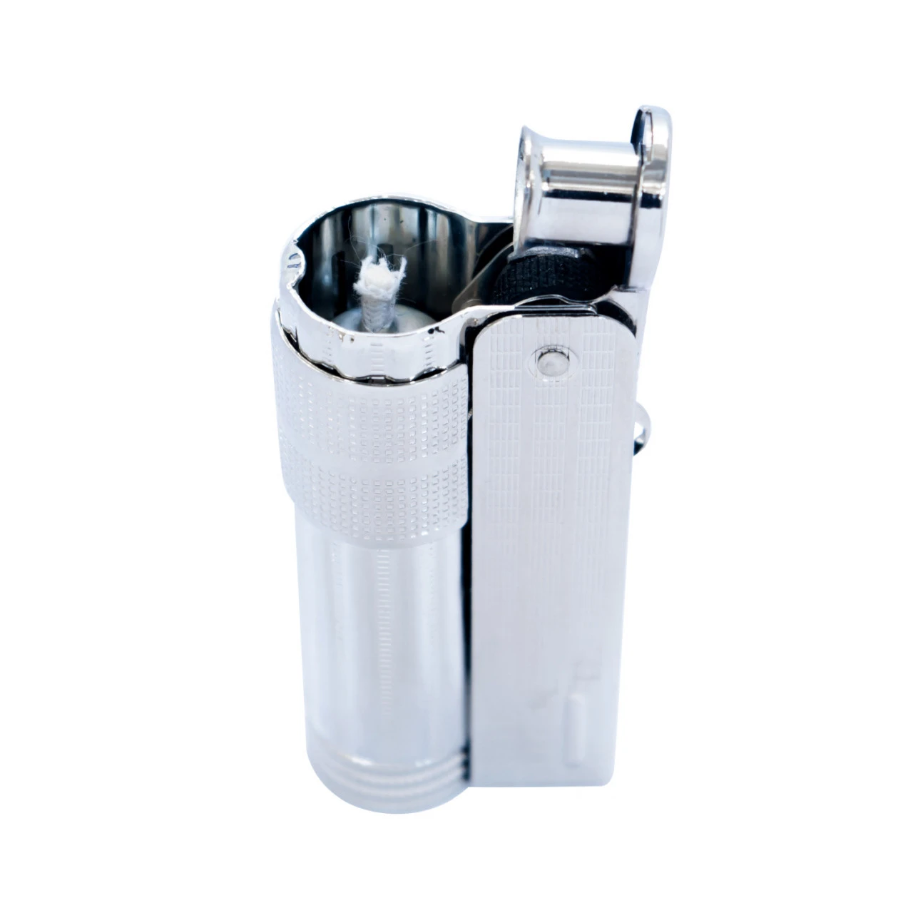 Das Benzinfeuerzeug Triplex Super ist ein klassischen Benzinfeuerzeug mit Windschutz und dem mit spezieller Watte gefüllten Tank, der mit Benzin gefüllt werden kann. Durch das Öffnen der Verschlussklappe wird ein Funke an den benzingetränkten Docht geschlagen und die windsichere Flamme brennt.