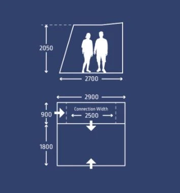 Das Vorzelt besteht aus Weathershield™ 68D, einem ultraleichten 68D-Polyester. Dieses Material ist einfach zu handhaben, strapazierfähig und wasserfest. Es bietet Schutz vor den Elementen und sorgt dafür, dass du bei jedem Wetter trocken bleibst.