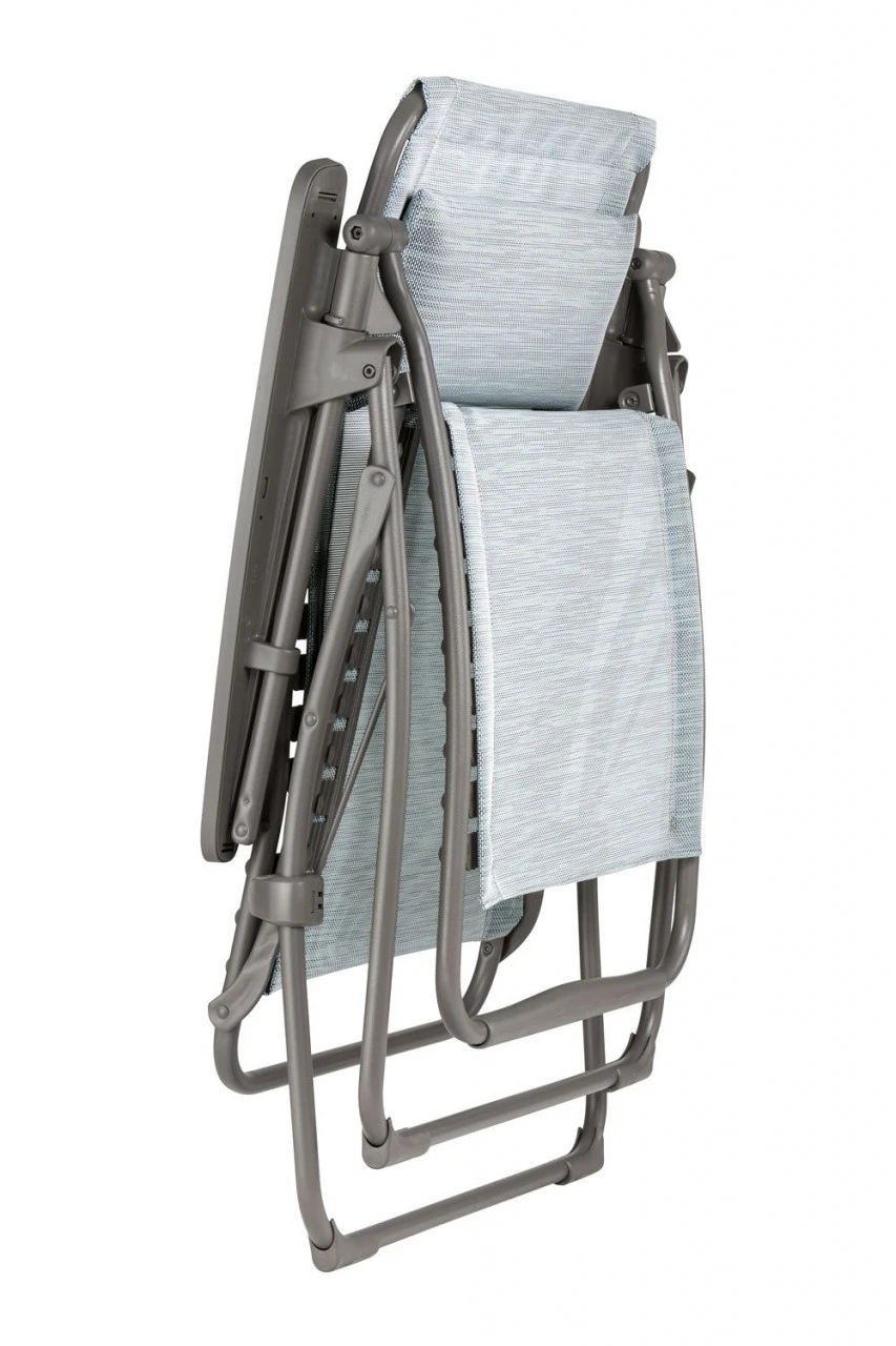 Auf der lafuma Futura Velio® Néo Relaxsessel kannst Du dich nach langen Tagen besonders gut entspannen. Die Liege kann nach deinen individuellen Wünschen in die für Dich richtige Liegeposition stufenlos verstellt werden. Neben ihren ergonomischen Armlehnen verfügt die Liege über ein ergonomisches Kopfkissen. Dies sorgt für einen besonderen Komfort und kann bei Bedarf auch abgenommen werden. Des Weiteren ist die Futura Velio® Néo bis maximal 140 Kilogram belastbar.