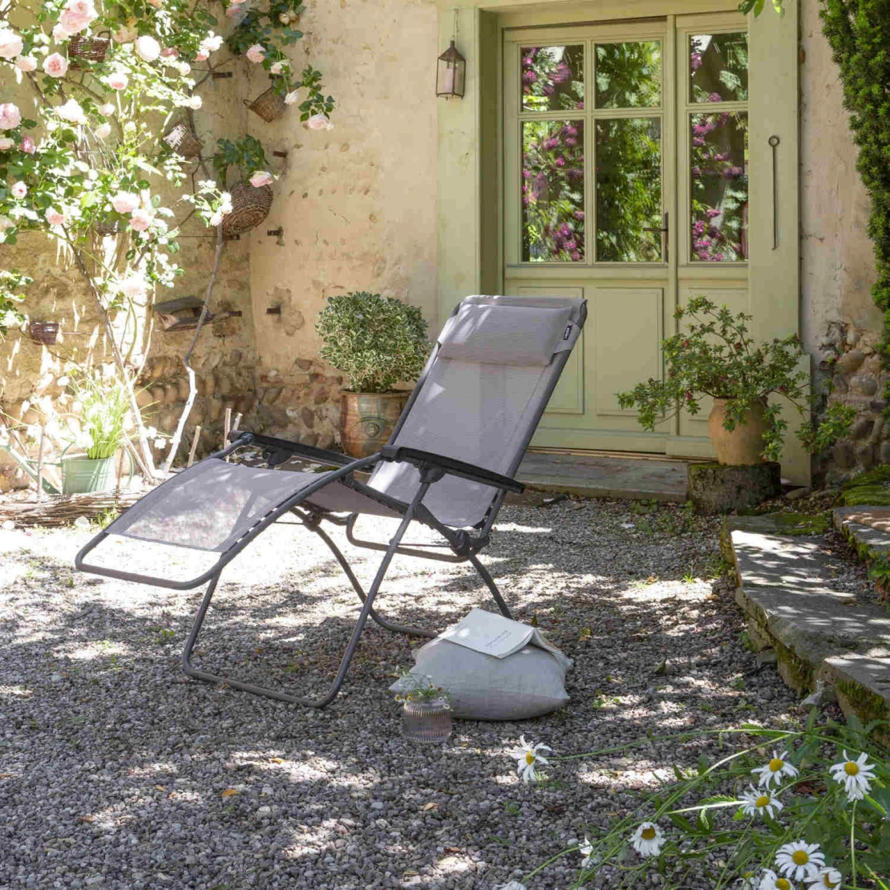 Der Lafuma R Clip Batyline® Relaxsessel mit dem patentierten Clip-System besitzt einen hohen Liegekomfort und ist stufenlos verstellbar. Das Kopfpolster lässt sich verstellen und abnehmen. Zur Ausstattung gehören Armlehnen in gekörntem Harz-Reliefmuster und Feststellbremse. Das Batyline Gewebe ist UV-beständig und besonders reißfest.