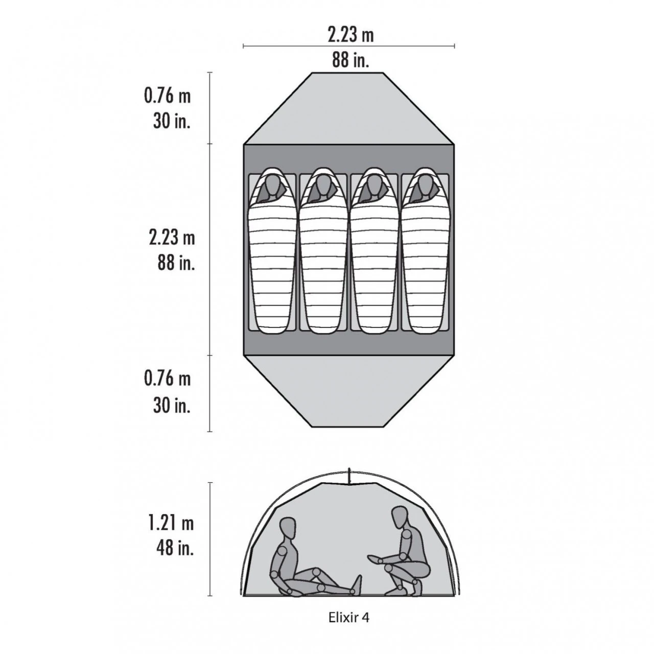 Das MSR Elixir 4 Gray Rucksackzeltist ein leichtes und geräumiges Zelt für 4 Personen plus Ausrüstung. Dank seines größeren Eingangsbereichs bietet das MSR Elixir 4 Gray Trekkingzelt 35 Prozent mehr Stauraum.Gerade bei längeren Touren ist ein platzsparendes und leichtes Zelt ein wahrer Segen. Seine zwei großen Stay-Dry Türen halten die Feuchtigkeit draußen. Dank seiner farblichen Markierungen an Gestänge und Clips lässt es sich kinderleicht und schnell zusammenbauen und lässt sich durch seine leuchtenden Reißverschlüsse auch problemlos im dunkeln öffnen. Verstellbare Abspannleinen am Überzelt halten das MSR Elixir 4 Gray Rucksackzelt sturmfest.