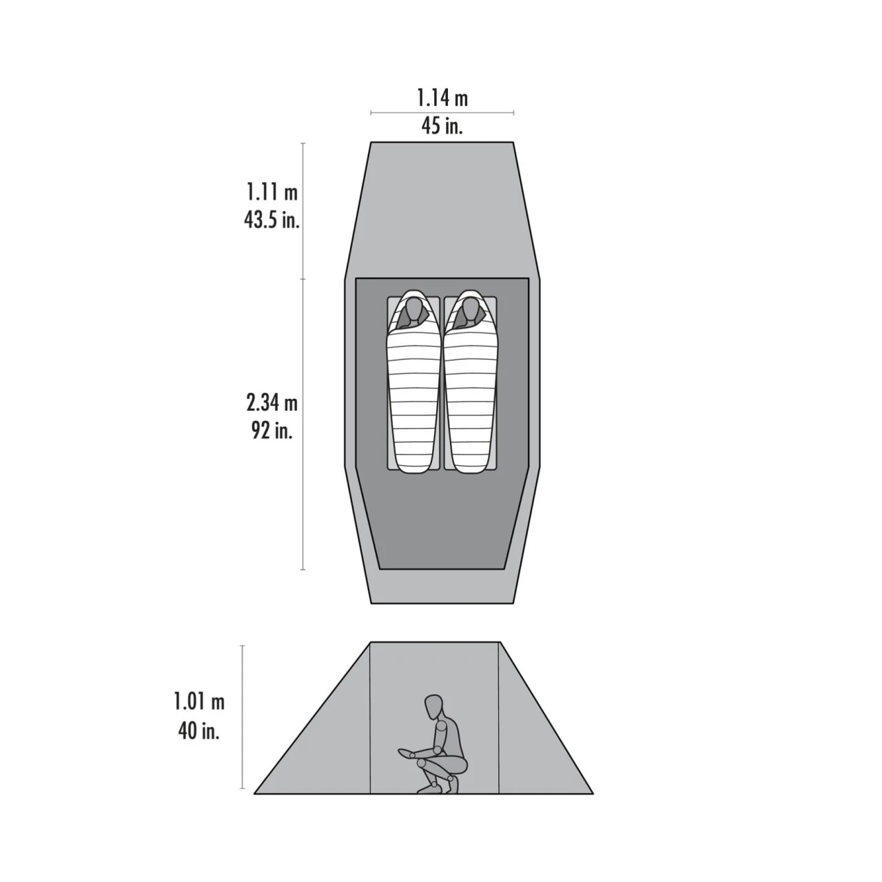 Ausgelegt für drei Jahreszeiten ist das MSR Tindheim 2 Trekkingzelt besonders vielseitig, geräumig und formstabil gegen jegliche Wetterlage. Ob längere Rucksackwanderungen im Gebirge oder Kurzauflüge in deiner näheren Umgebung ist das Tindheim dein idealer Begleiter. Das Zelt ist ausgelegt für bis zu zwei Personen. Dank des sturmsicheren Designs kannst du das MSR Tindheim 2 Trekkingzelt im Regen aufbauen, ohne dass der Innenbereich nass wird. Das geräumige Innere und die Apsis biete jede Menge Stauraum für dein Campingequipment und ausreichend komfort bei schlechtem Wetter. Von innen hast du Überzeltbelüftungsöffnungen sowie eine doppelwandige Tür mit Reißverschluss, die ebenfalls ein Fenster verfügt für eine optimale Luftzufuhr. Im Lieferumfang ist eine Bodenplane enthalten, die auch die Apsis umfasst, um deine Ausrüstung vor nassem Boden geschützt wird.