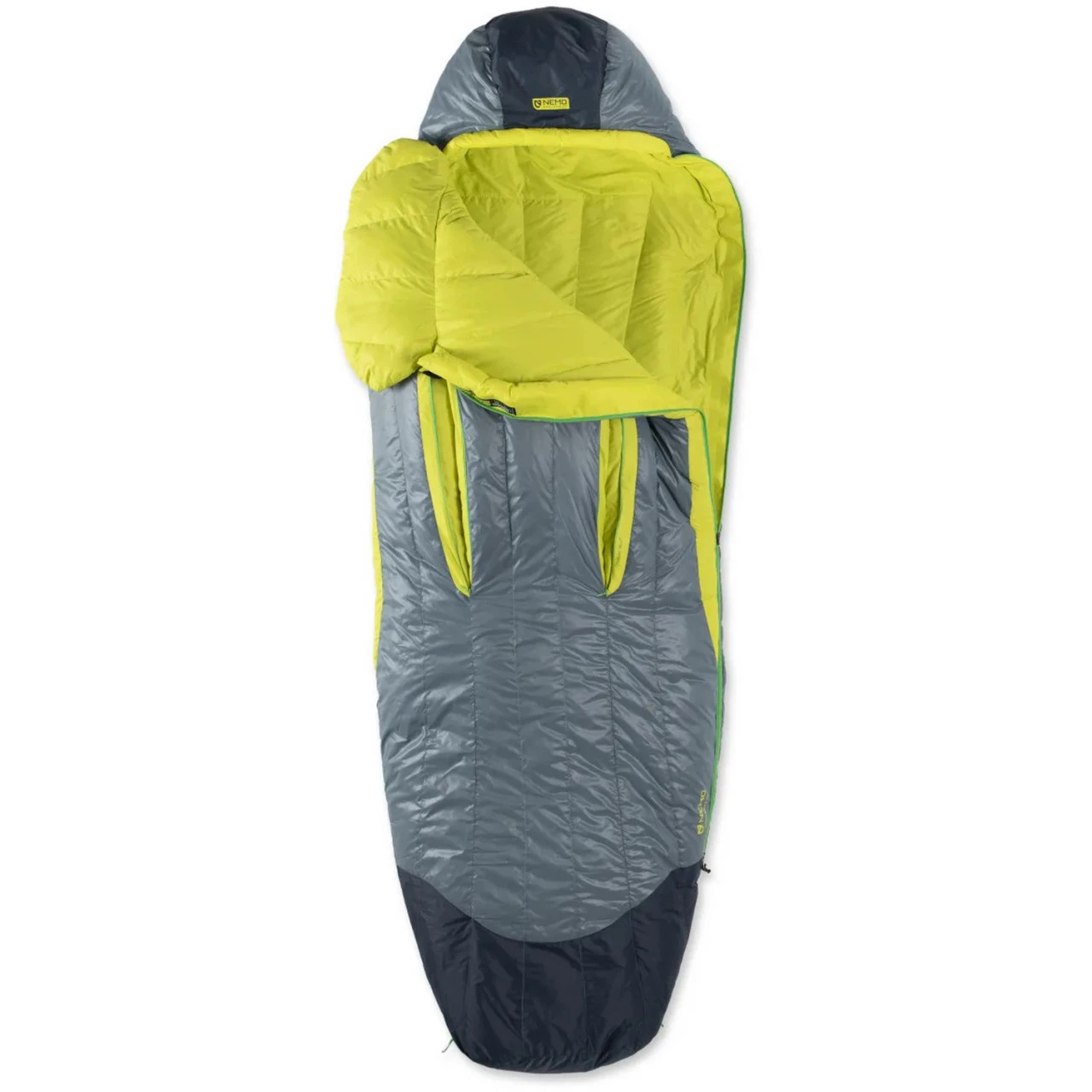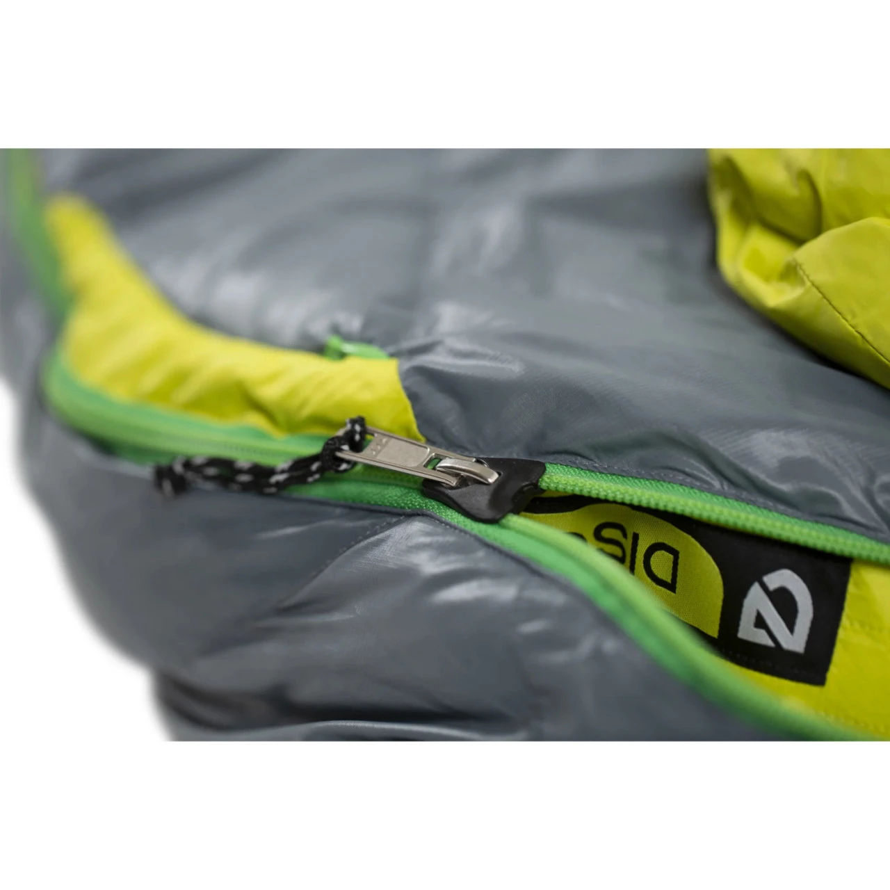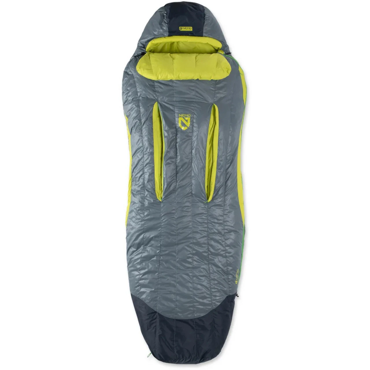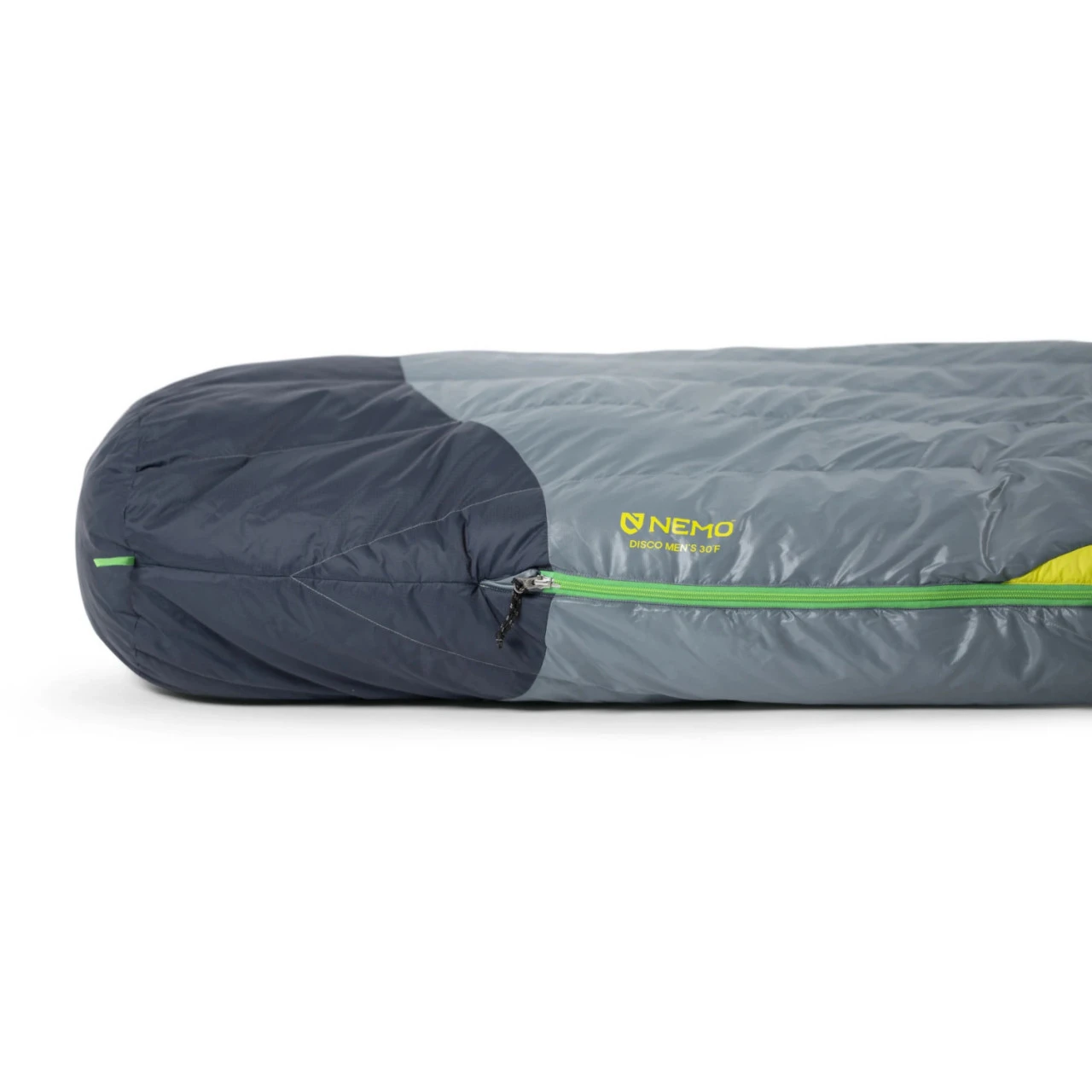 Der Nemo Equipment Disco Mens 30 Long ist der ideale Daunenschlafsack für Seitenschläfer, der den größtmöglichen Schlafkomfort auf deinem Abenteuer oder beim Camping bietet. Die klassische Spoon™-Form wurde mit neuen Schnitten aktualisiert und bietet viel Platz im Bereich der Ellenbogen und Knie, so dass Seitenschläfer während der Nacht bequem die Position wechseln können, und das bei sehr kleinem Packmaß. Die Füllung aus hochwertigen wasserabweisenden (hydrophoben), PFC-freien und zu 100% RDS-zertifizierten Daunen mit einer Bauschkraft von 650 cuin sorgt für die bestmögliche Wärmeleistung. Dieser 3-Jahreszeiten-Schlafsack ist vollgepackt mit praktischen Features, die dir den besten Schlafkomfort bieten. Das Blanket Fold ist ein lässt sich einklappen und vermittelt dir das Gefühl, dich im bis zum Kopf mit einer Decke zuzudecken. Damit du dich fast wie in einem Bett fühlst, ist in der Kapuze ein integriertes Kissenfach eingearbeitet. Zur Regulierung der Temperatur gibt es die Thermo Gills™. Das sind zwei Belüftungsöffnungen im Oberkörperbereich, die sich je nach Temperatur mit einem Reißverschluss öffnen oder schließen lassen. Ein wasserdichtes, atmungsaktives Fußfach sorgt auch bei Kondensation im Zelt für trockene Füße.
