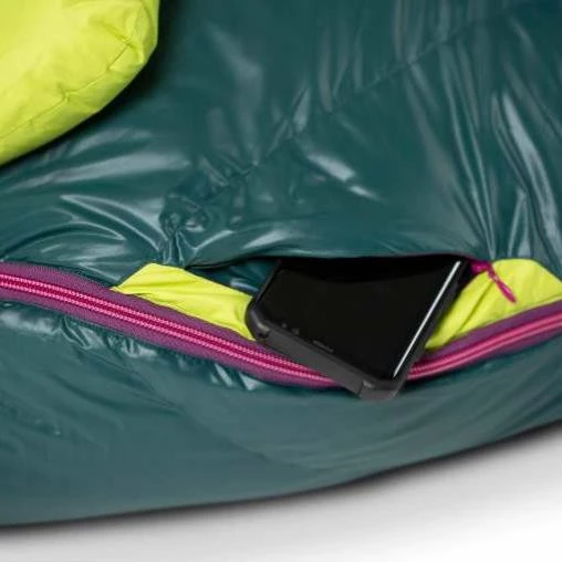 Der Nemo Equipment Disco Womens 15 Long Daunenschlafsack ist der ideale Schlafsack für Seitenschläfer, der den größtmöglichen Schlafkomfort auf deinem Abenteuer oder beim Camping bietet. Die klassische Spoon™-Form wurde mit neuen Schnitten aktualisiert und bietet viel Platz im Bereich der Ellenbogen und Knie, so dass Seitenschläfer während der Nacht bequem die Position wechseln können, und das bei sehr kleinem Packmaß. Die Füllung aus hochwertigen wasserabweisenden (hydrophoben), PFC-freien und zu 100% RDS-zertifizierten Daunen mit einer Bauschkraft von 650 cuin sorgt für die bestmögliche Wärmeleistung. Der 3-Jahreszeiten Nemo Equipment Disco Womens 15 Long Daunenschlafsackist vollgepackt mit praktischen Features, die dir den besten Schlafkomfort bieten. Das Blanket Fold ist ein lässt sich einklappen und vermittelt dir das Gefühl, dich im bis zum Kopf mit einer Decke zuzudecken. Damit du dich fast wie in einem Bett fühlst, ist in der Kapuze ein integriertes Kissenfach eingearbeitet. Zur Regulierung der Temperatur gibt es die Thermo Gills™. Das sind zwei Belüftungsöffnungen im Oberkörperbereich, die sich je nach Temperatur mit einem Reißverschluss öffnen oder schließen lassen. Ein wasserdichtes, atmungsaktives Fußfach sorgt auch bei Kondensation im Zelt für trockene Füße.